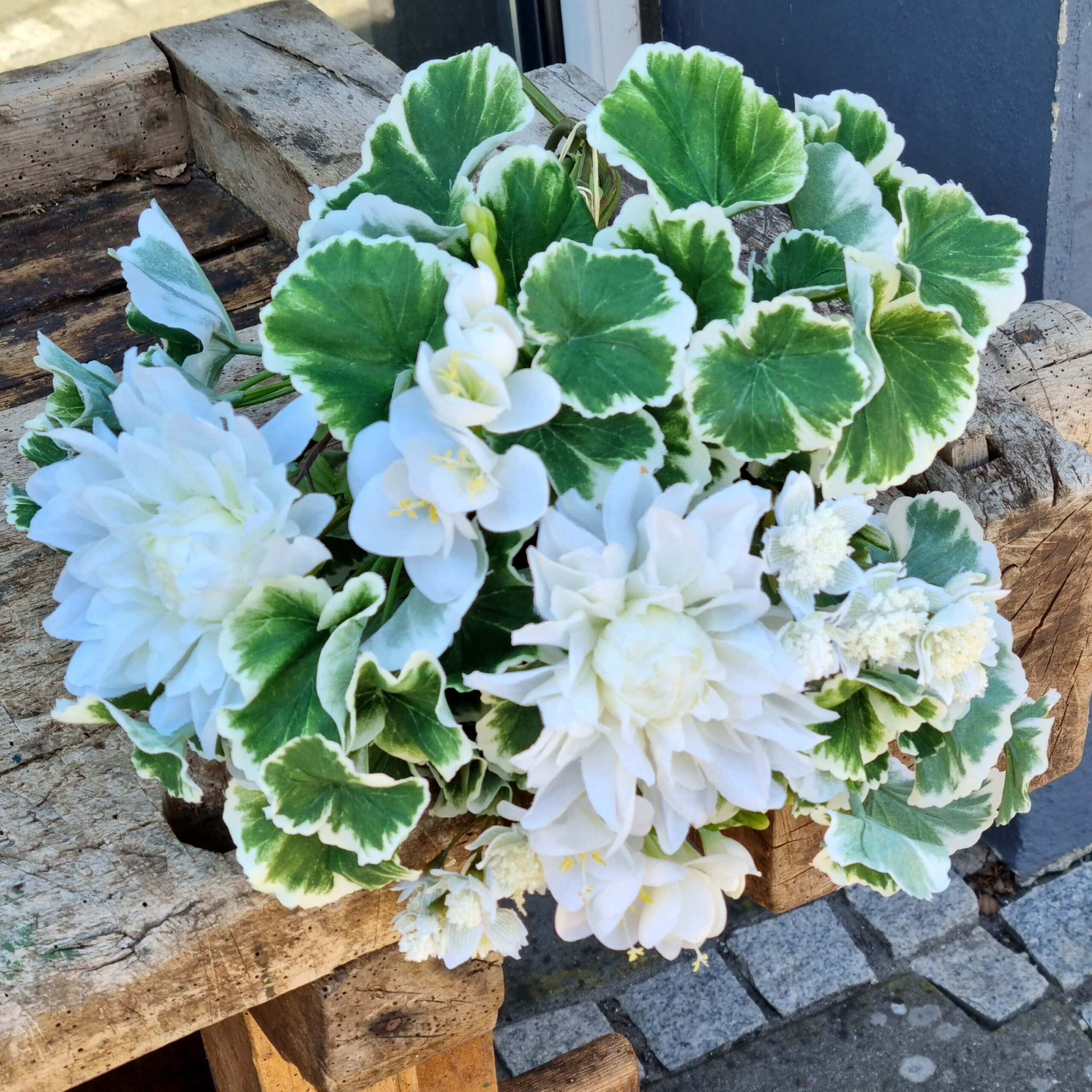 Geranium store blade i sød buket – flotte hvidrandede