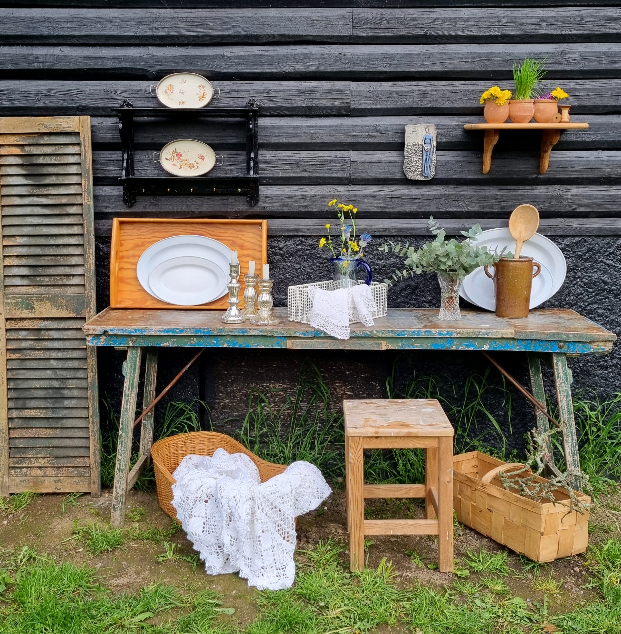 Rustikt gammelt klapbord med autentisk patinering