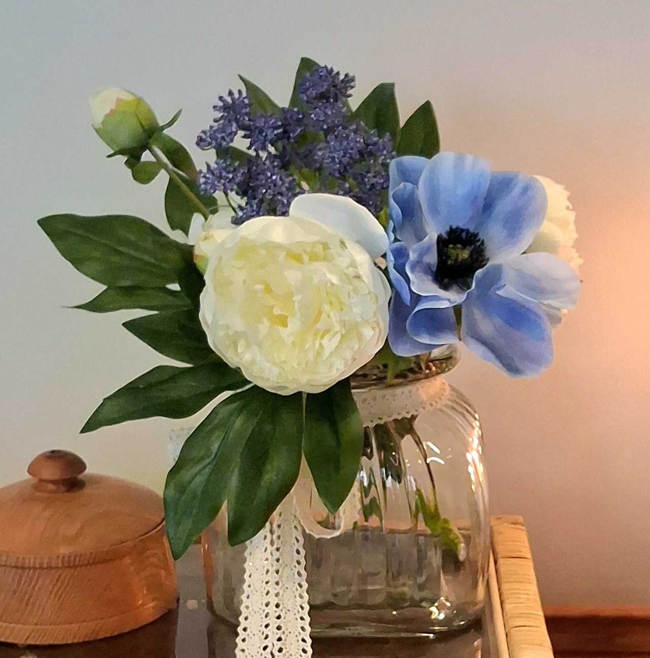 Anemone blå med stort flot hoved – så smuk – en virkelig sød og dekorativ, kunstig, naturtro blomst, som egner sig fint både alene og i en buket –