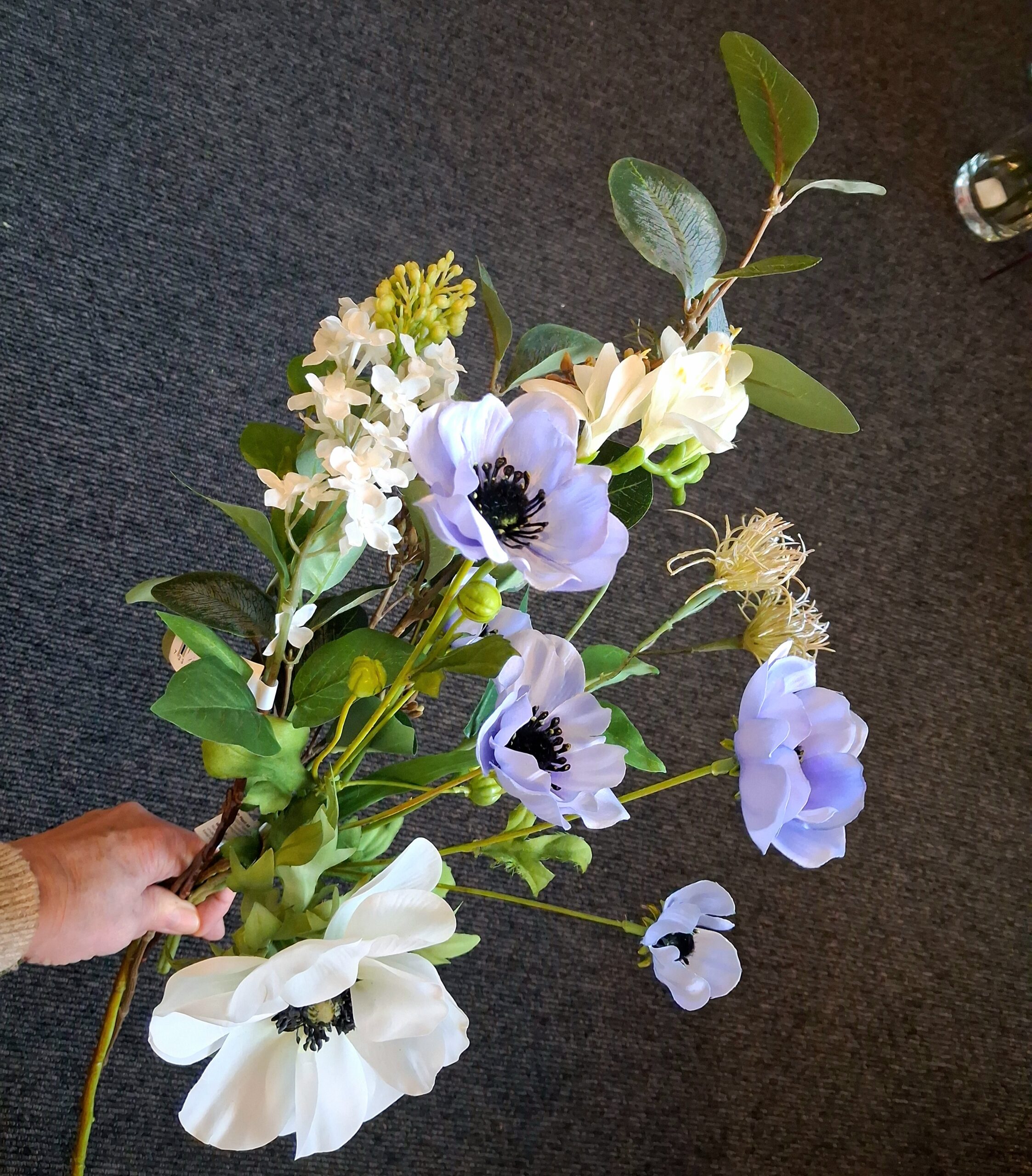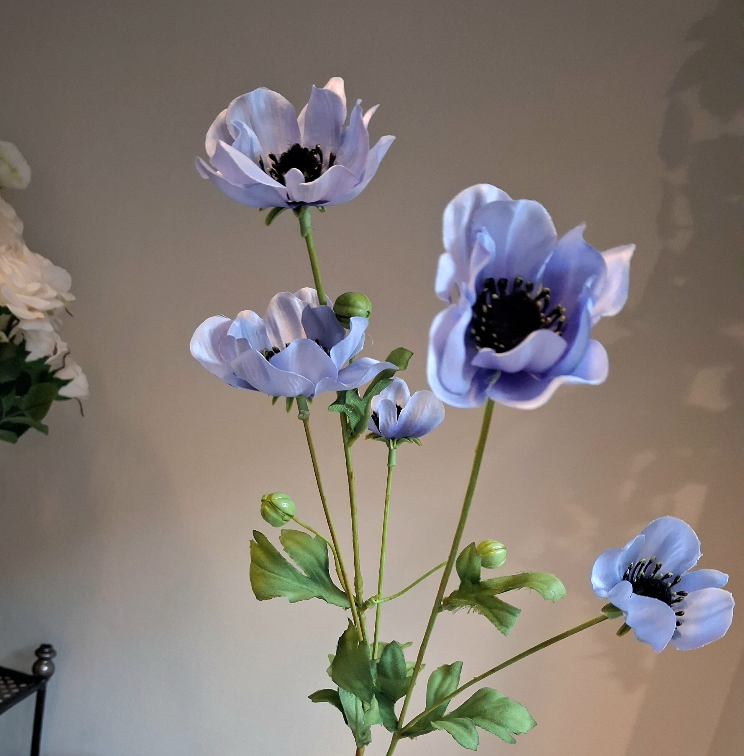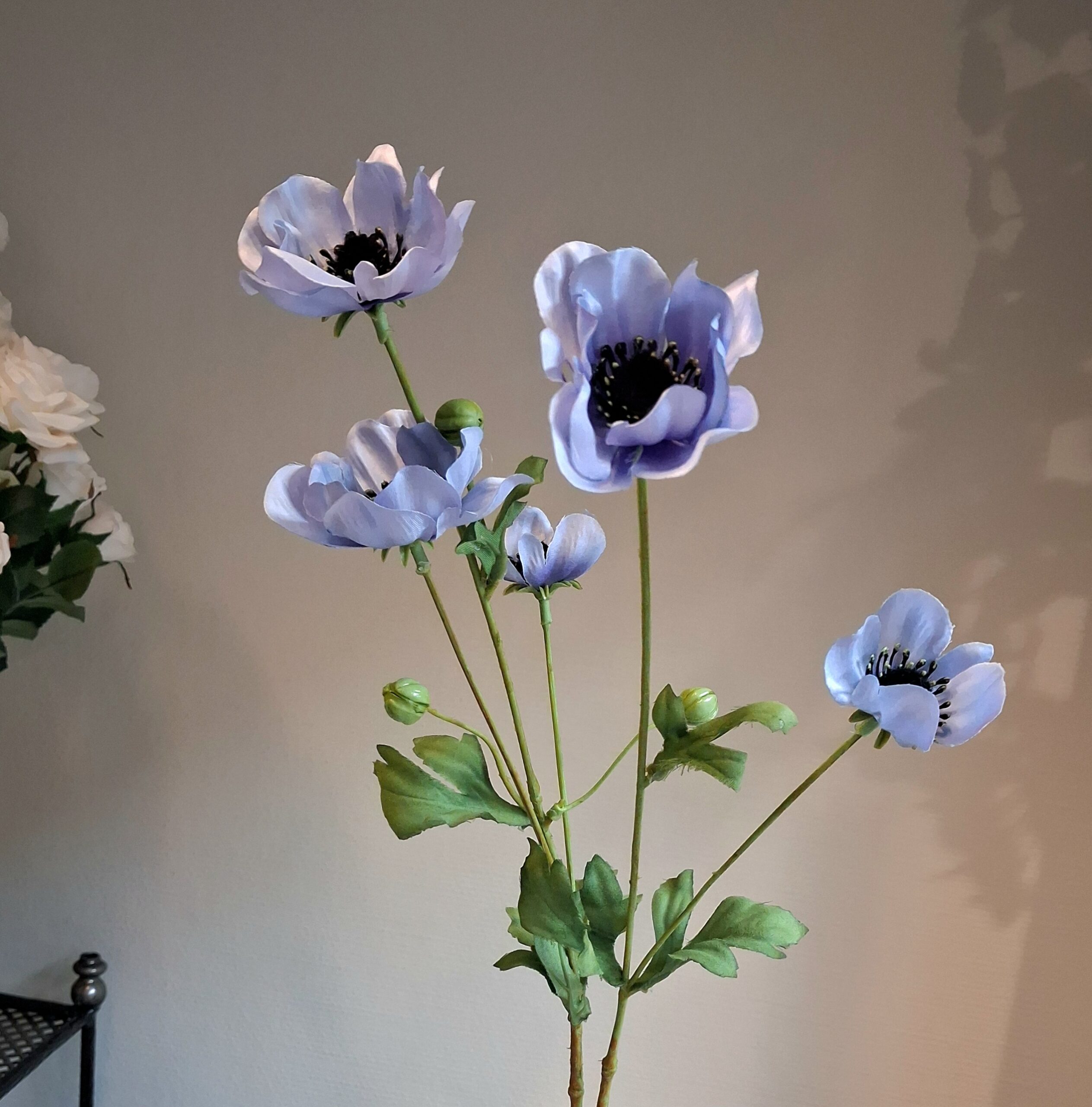 Anemone lys lilla stor flergrenet med flotte blomster hoveder – så smuk – en virkelig sød og dekorativ, kunstig, naturtro blomst, som egner sig fint både alene og i en buket –