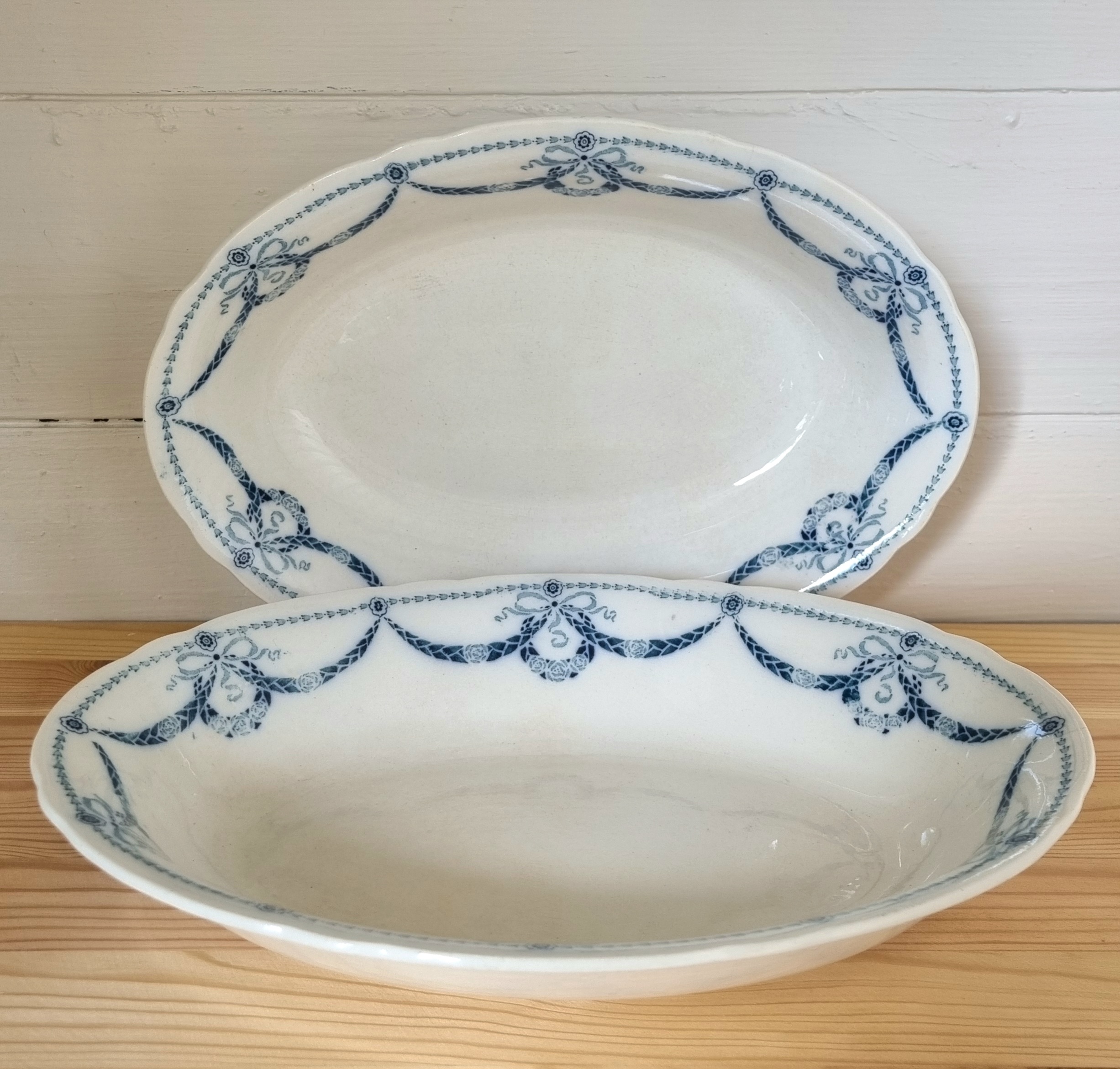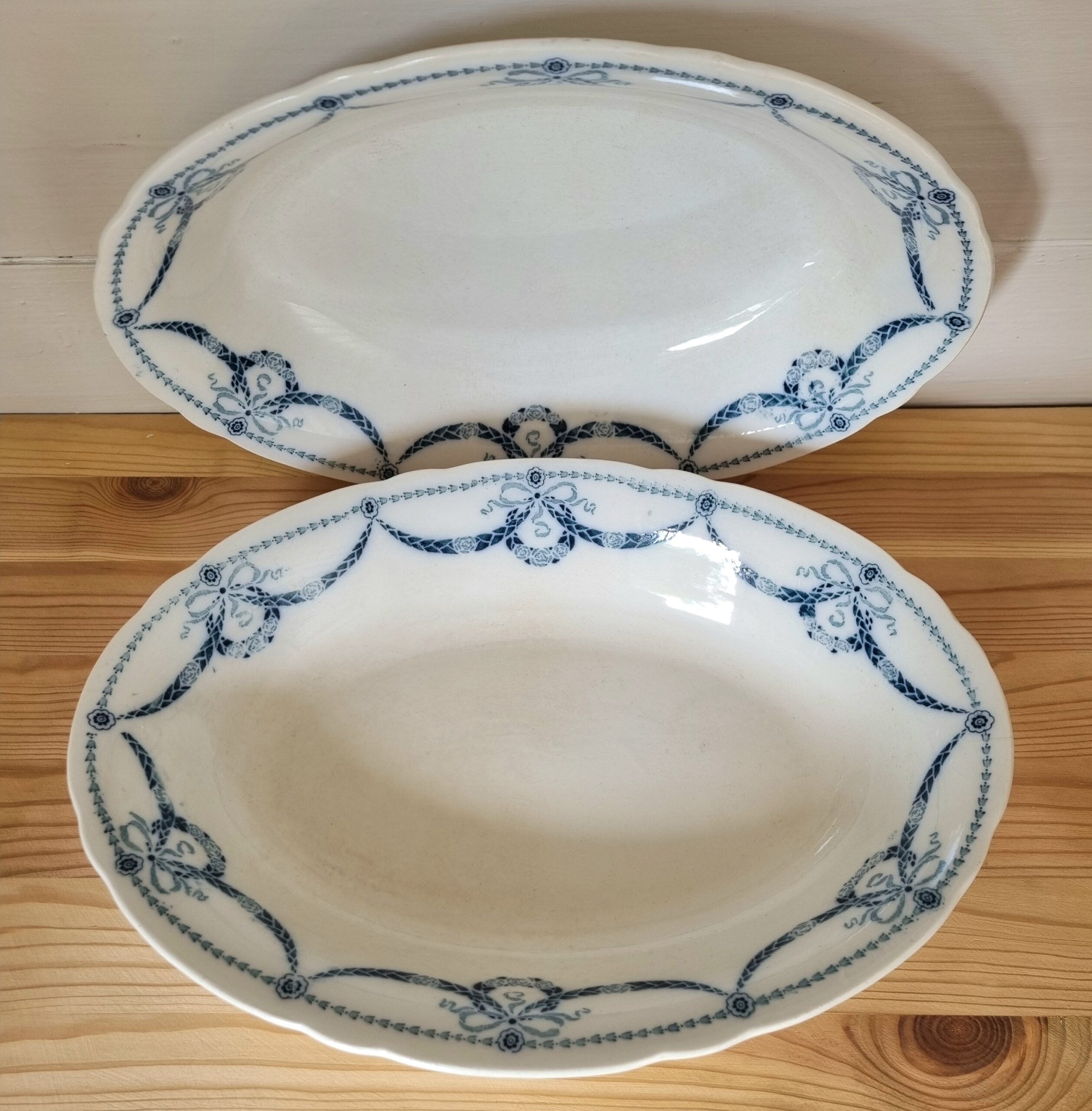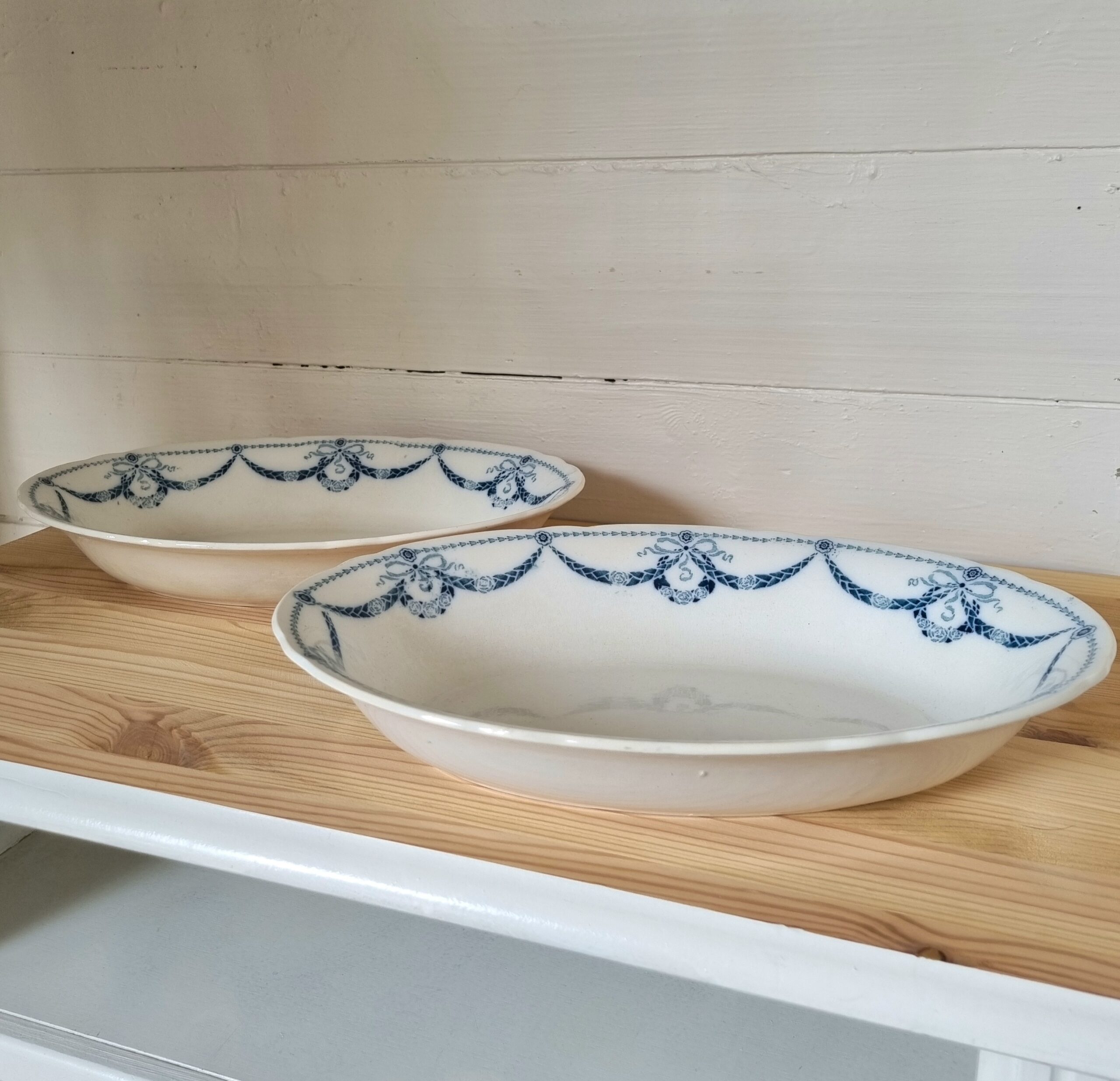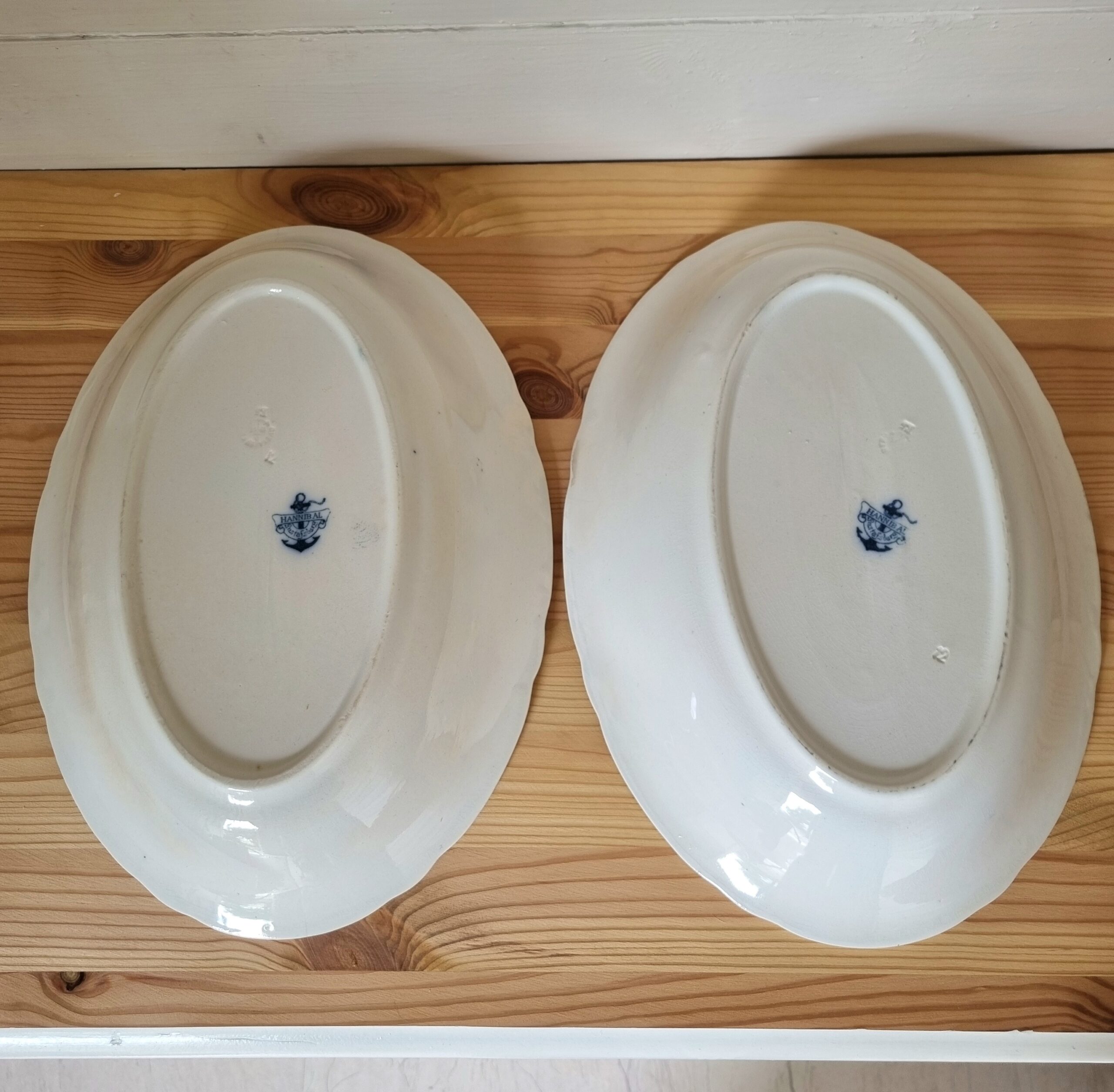 Antik Gustafsberg Hannibal oval skål – skøn med ægte sjæl – meget dekorativ med sit smukke mønster – stellet er produceret mellem 1913 og 1930, hvor man stavede Gustavsberg med “f” i stedet for “v” – skålen er i meget fin og velholdt stand uden skår, misfarvning eller revner – der er 3 stk. ens på lager, som sælges enkeltvis hver for sig til prisen – disse 2 er i perfekt stand (den tredje har en anelse misfarvning – se den i anden profil) –