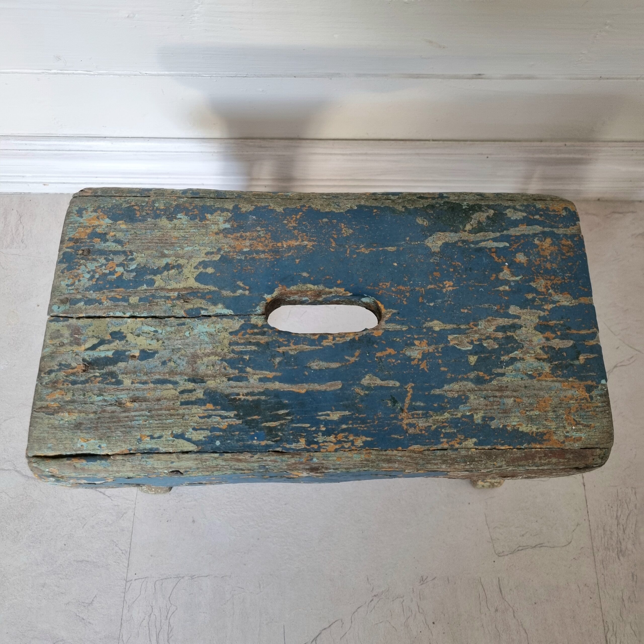 Antik lille skammel med skøn patina og afskalning