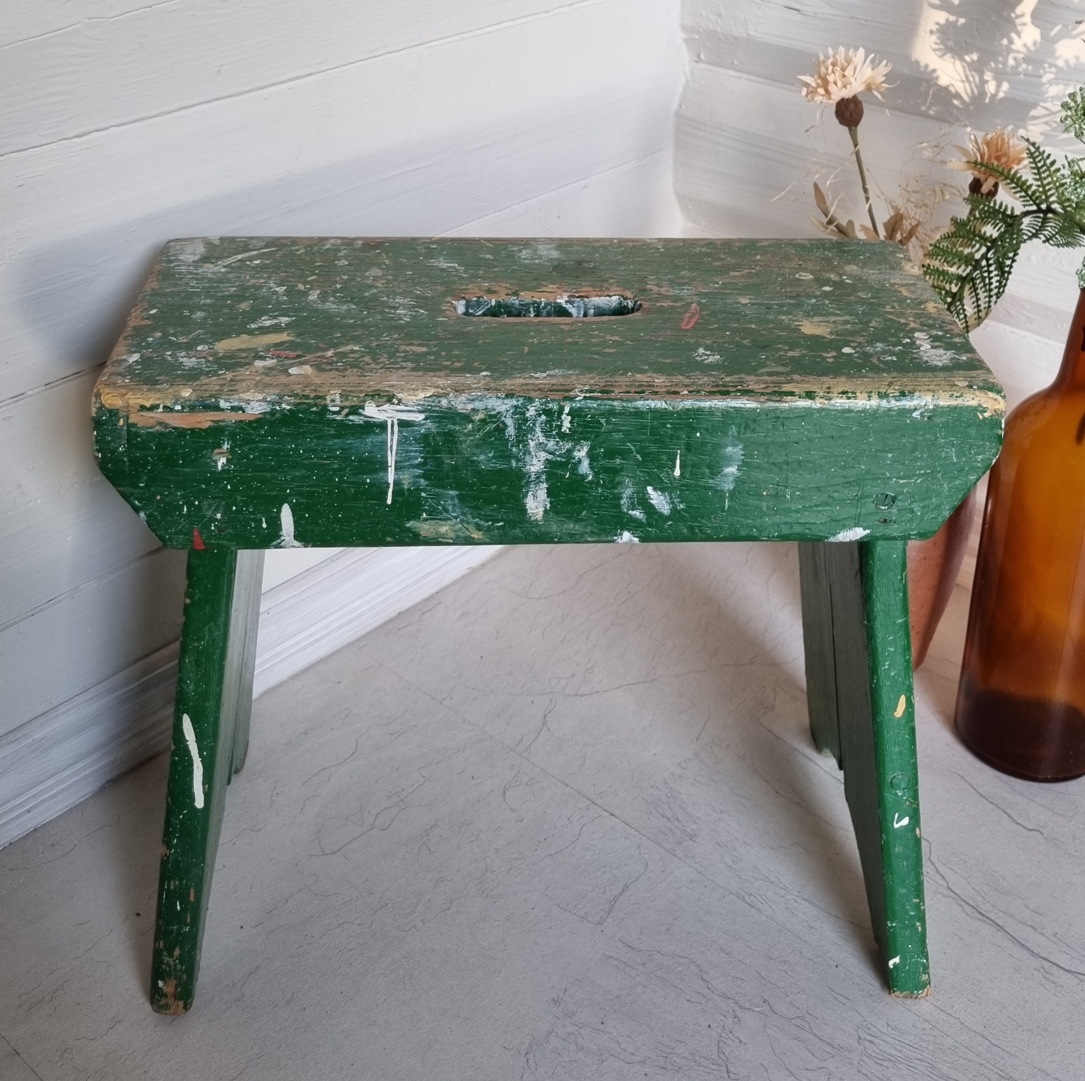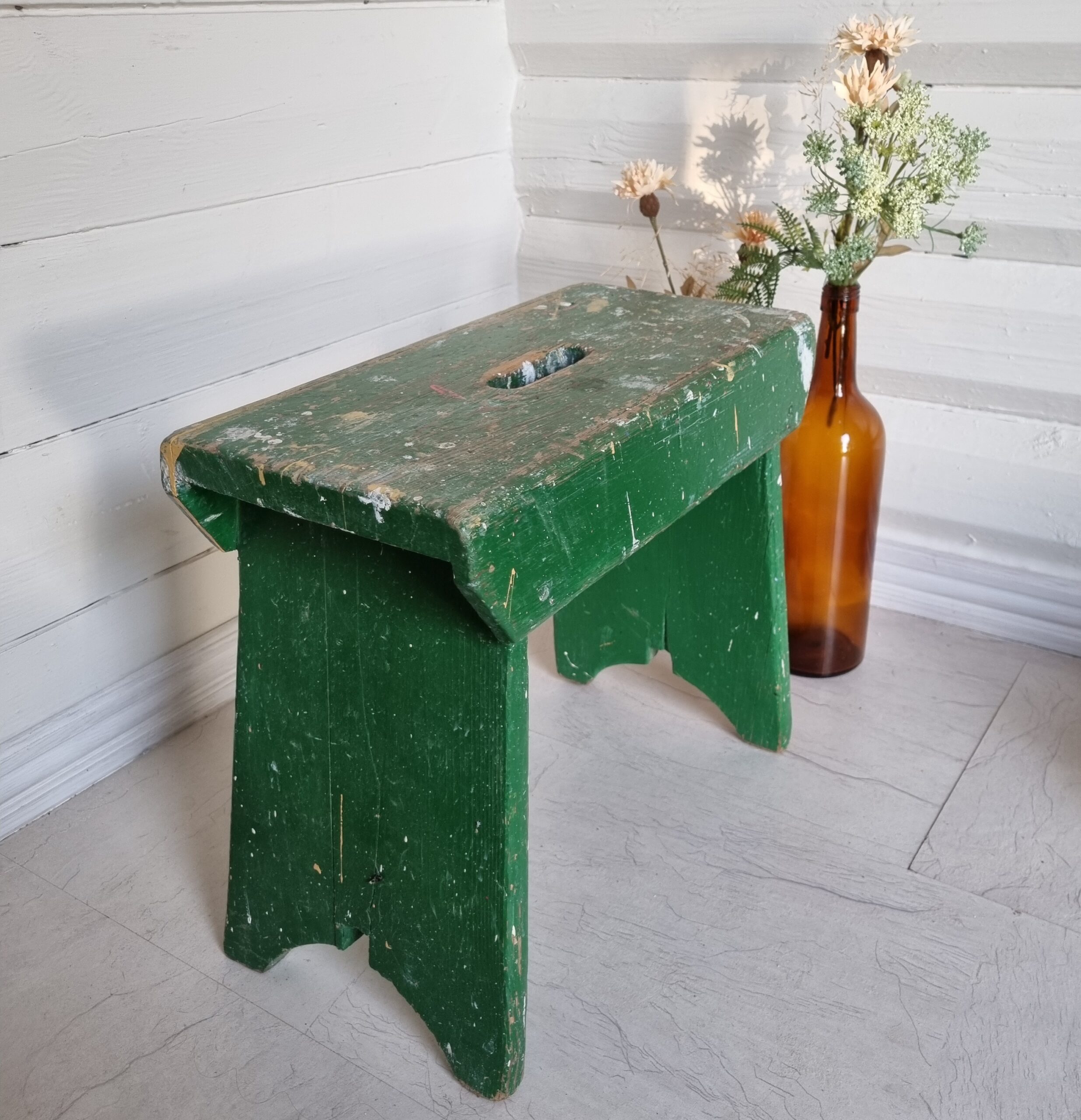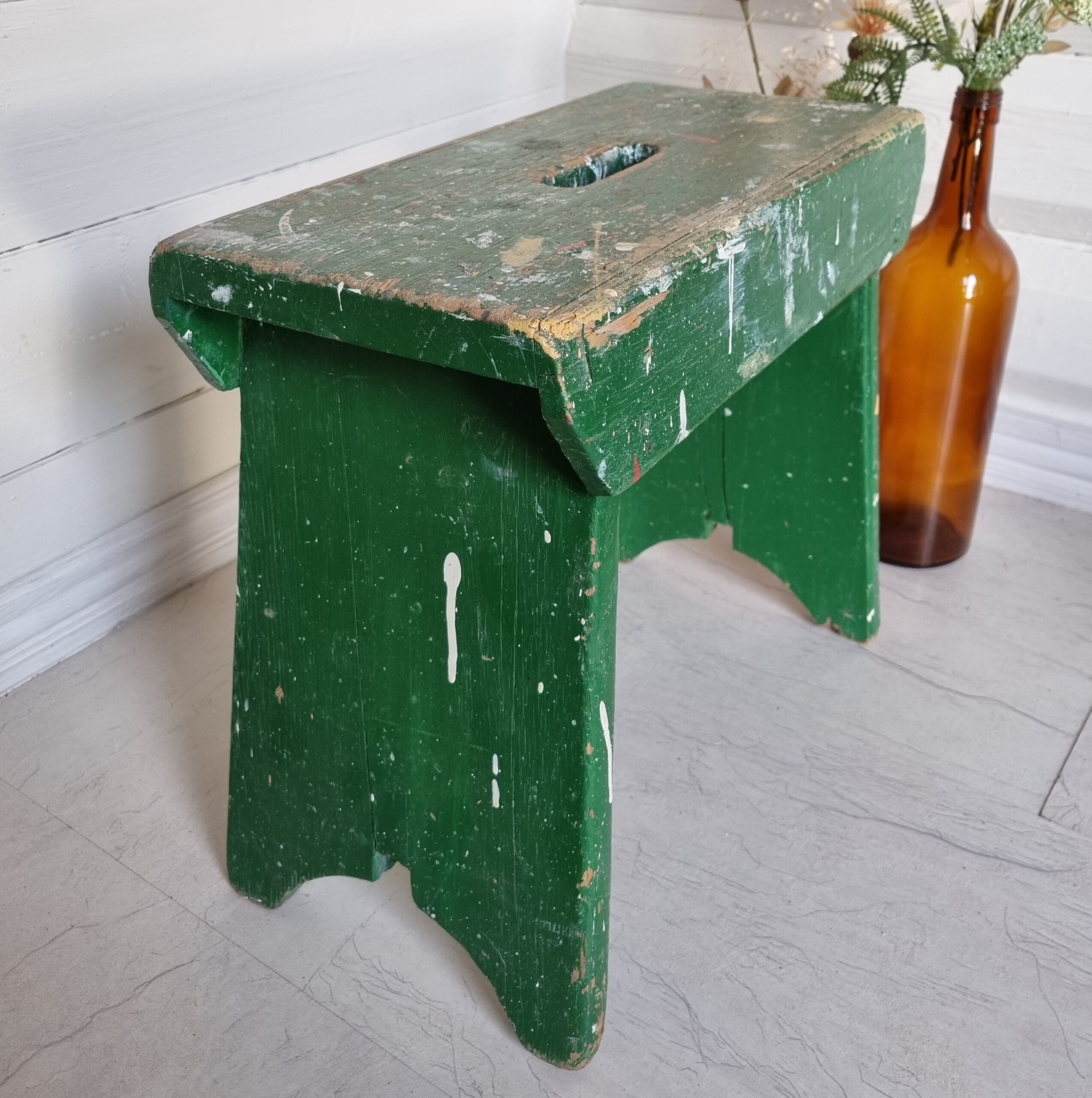 Antik stor skammel med skøn patinering