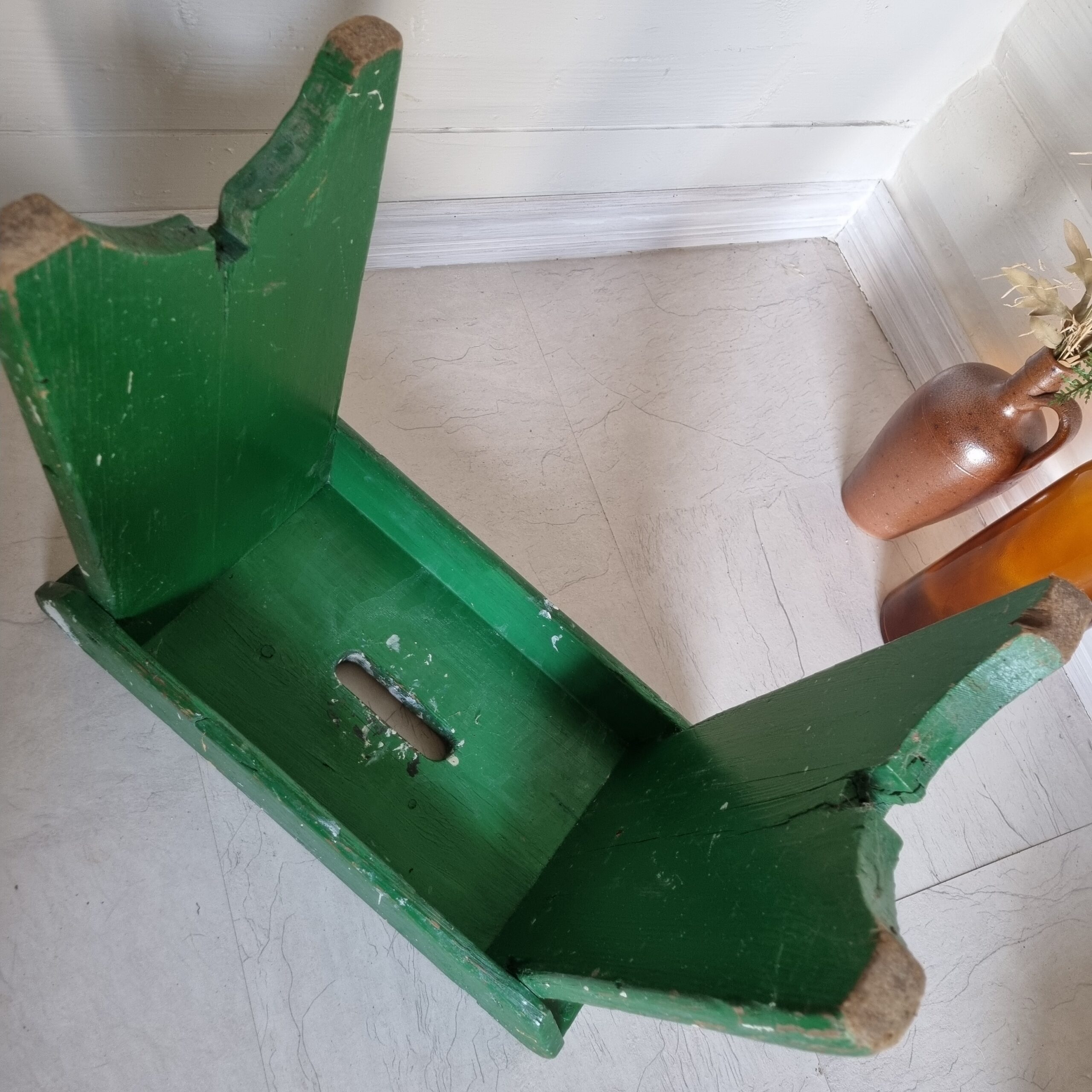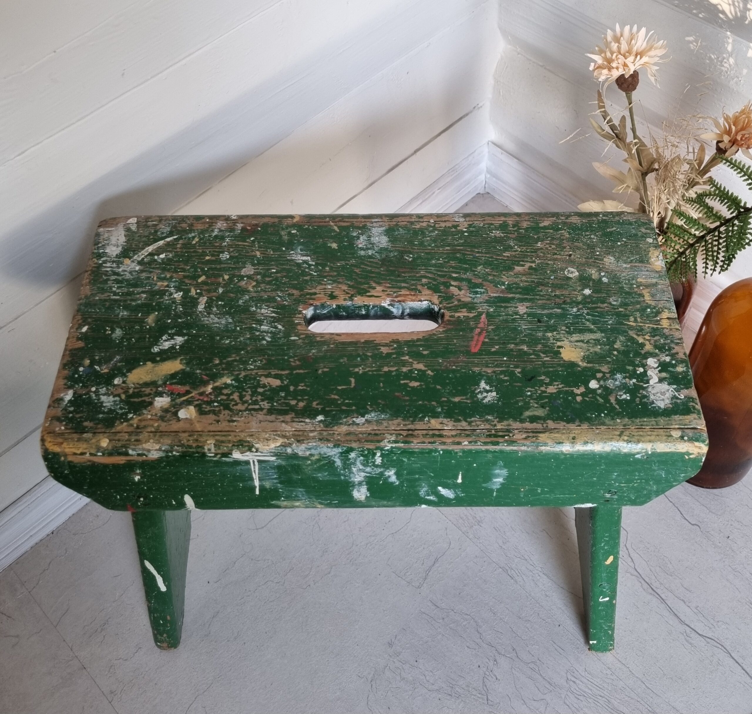 Antik stor skammel med skøn patinering og afskalning – rigtig gammel skammel – robust og flot med et helt unikt look – kan bruges til mange formål og er virkelig dekorativ –