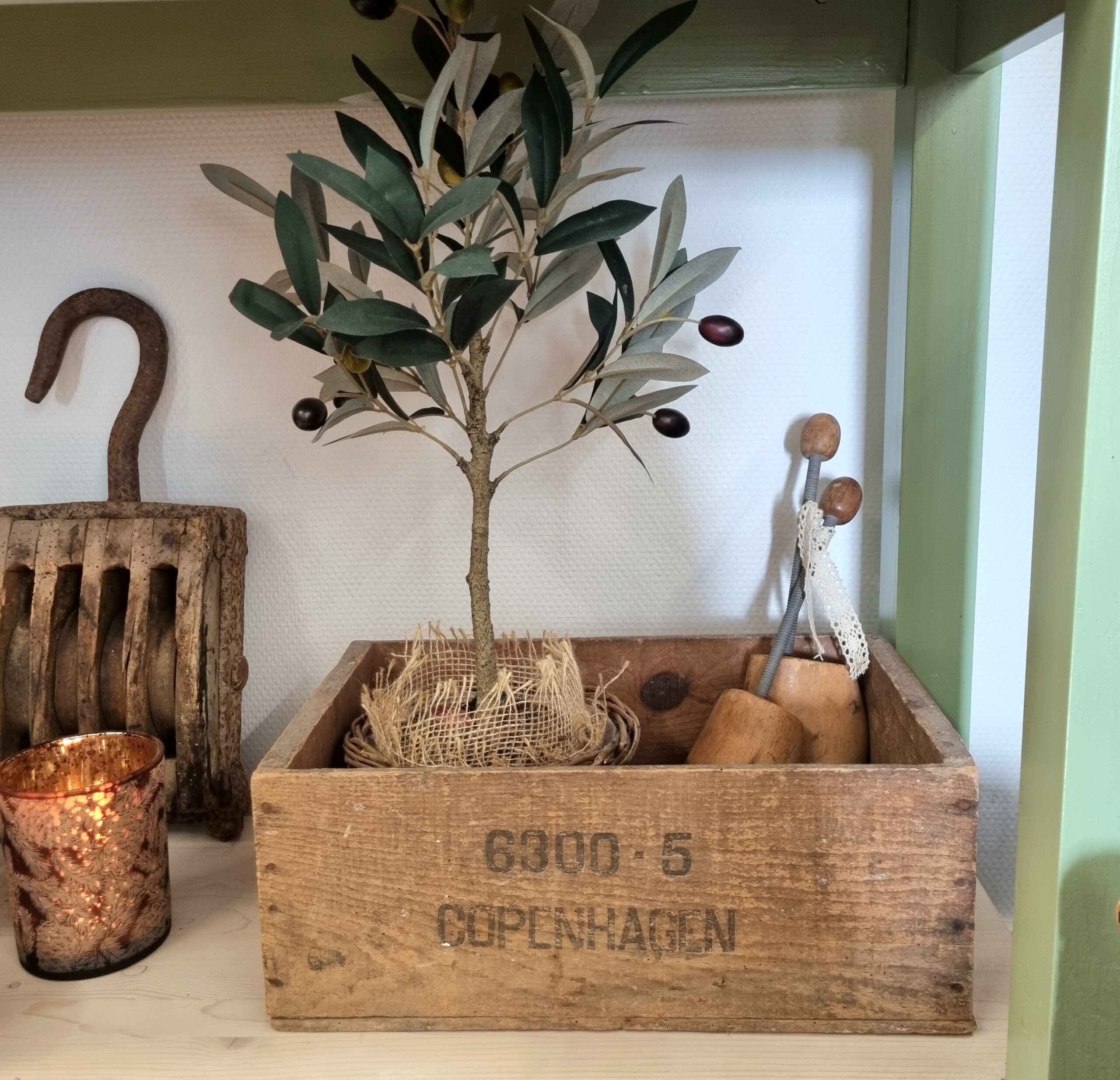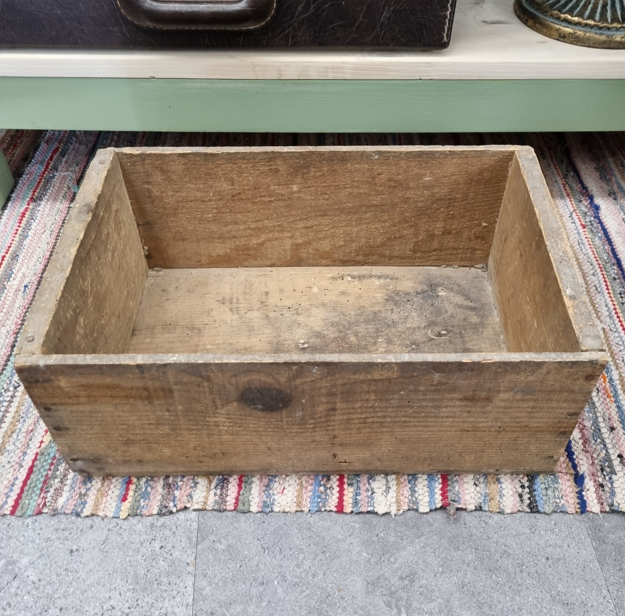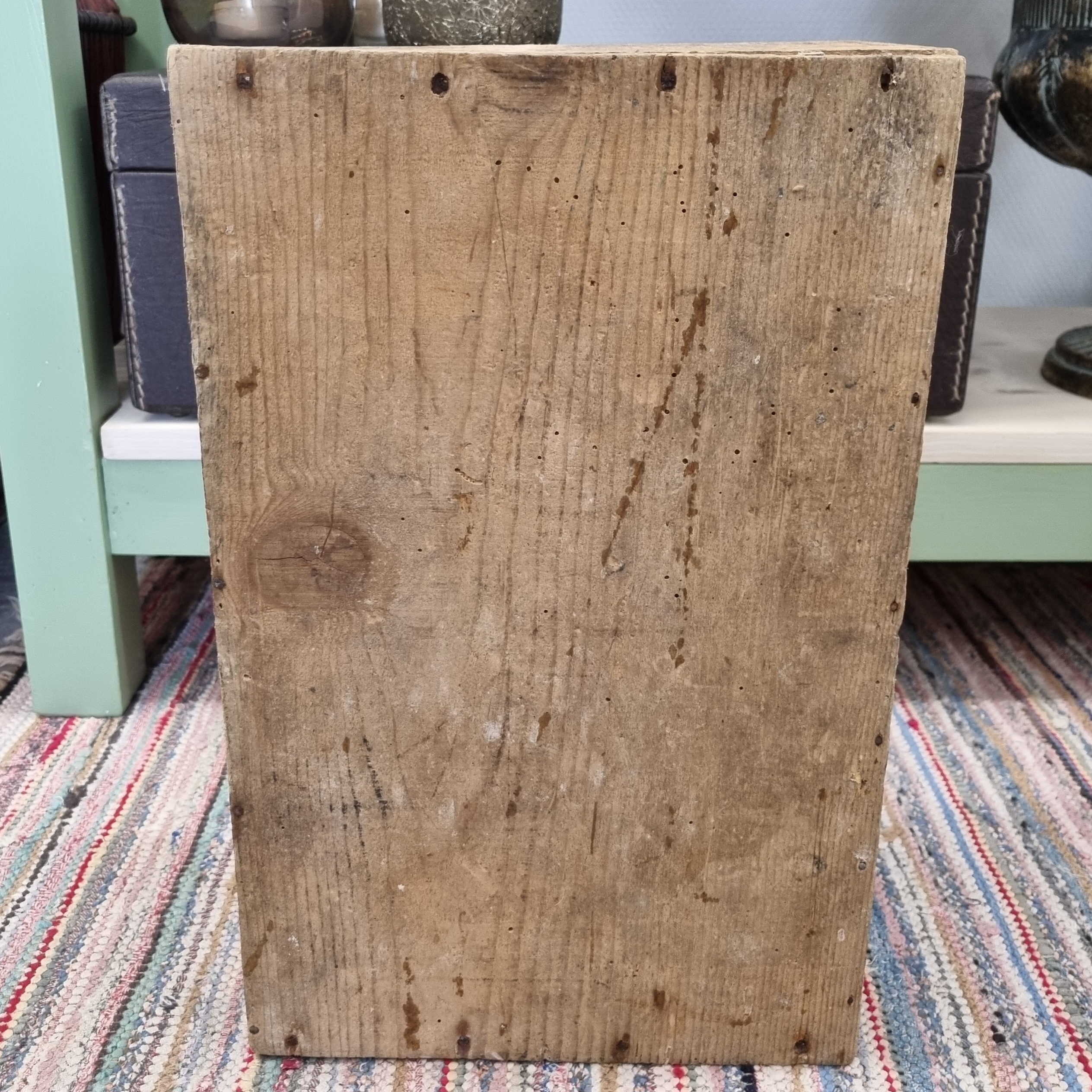 Trækasse med malerklatter og flot patinering