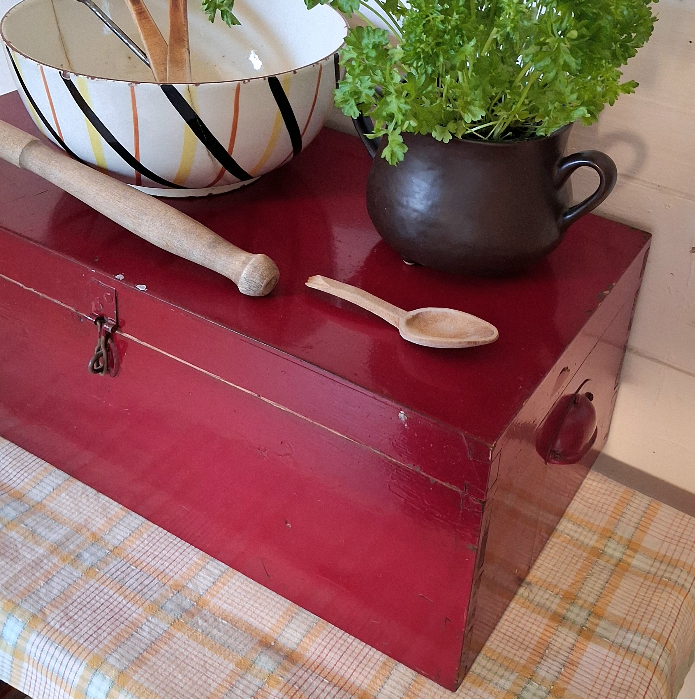 Flot gammel vinrød trækasse – fin og praktisk kasse i robust træ med greb i enderne – rummelig og virkelig dekorativ trækasse, som egner sig perfekt til opbevaring –