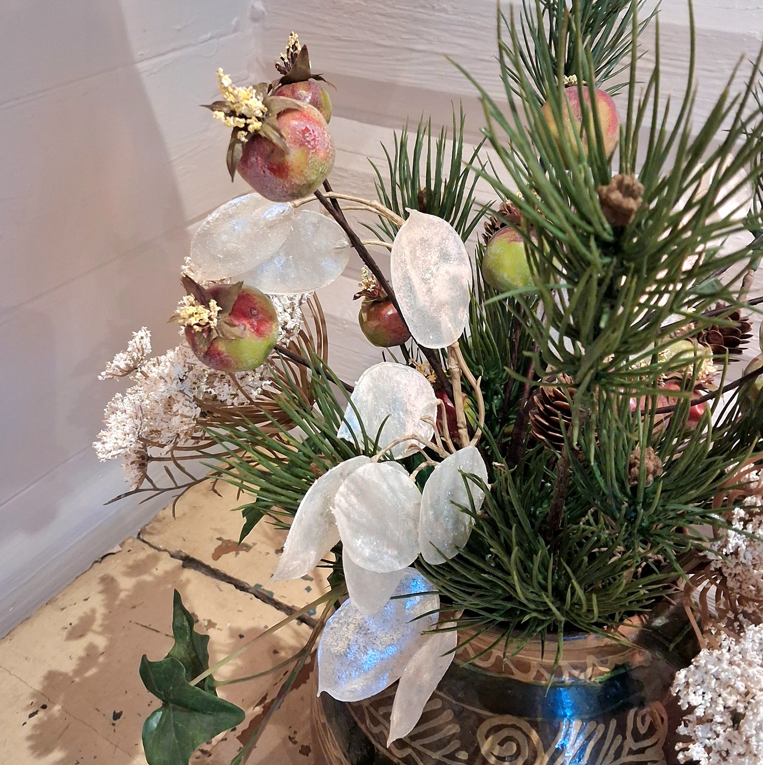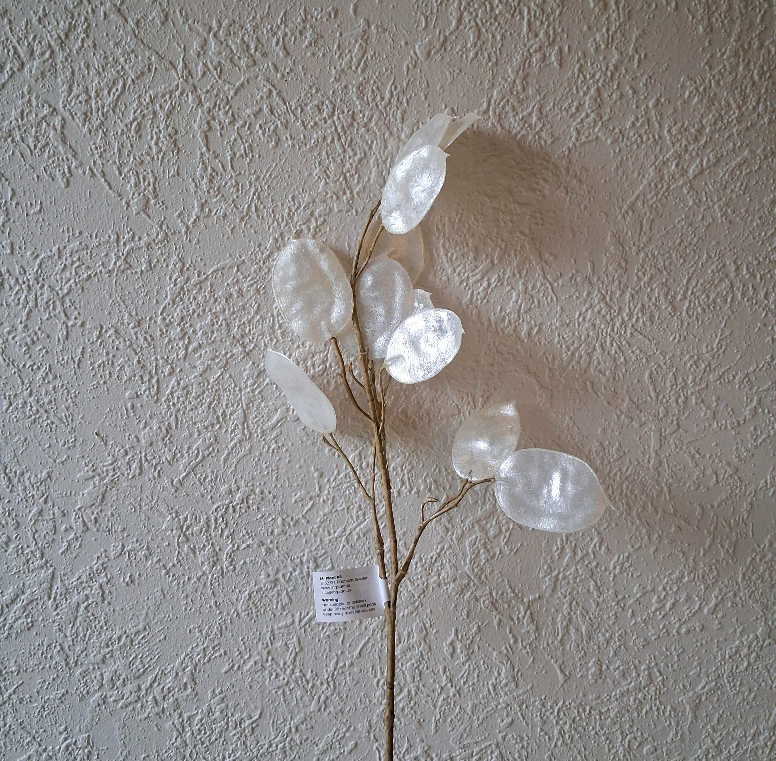 Flot hvid perlemor Judaspenge stilk – Lunaria med smukke tynde perlemors farvede blade – flot og fyldig blomster stilk, kunstig og meget dekorativ – både alene i en vase, i en dekoration og i en buket –