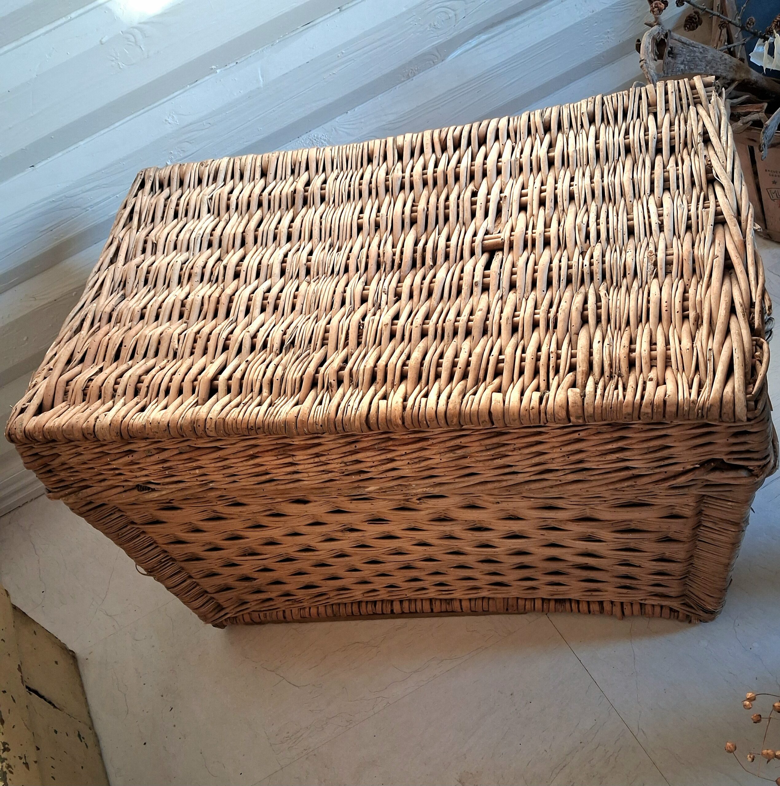 Flot stor gammel kurv med låg og greb – fantastisk til opbevaring !
