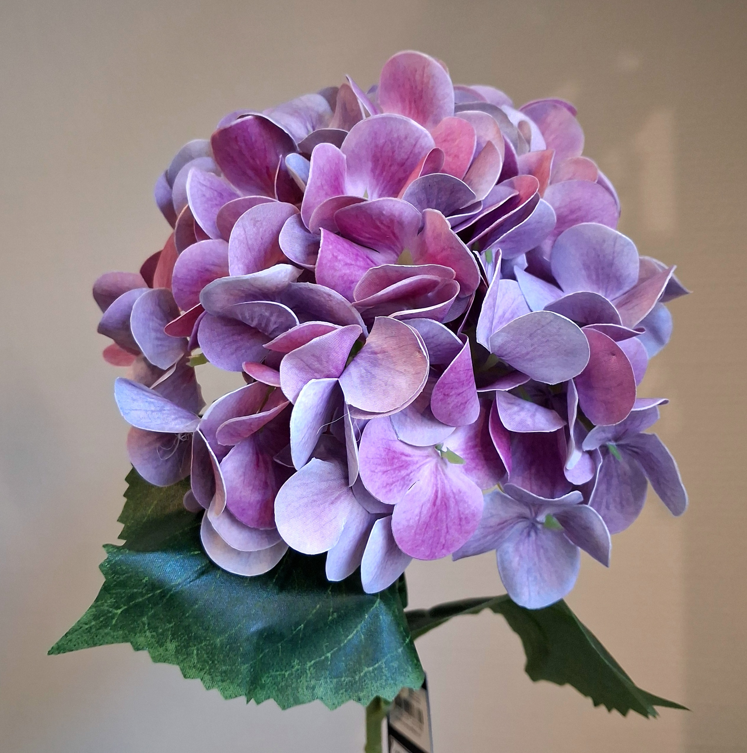 Så flotte og naturtro – kunstig Hortensia stilk i smuk rosa/lilla farve !