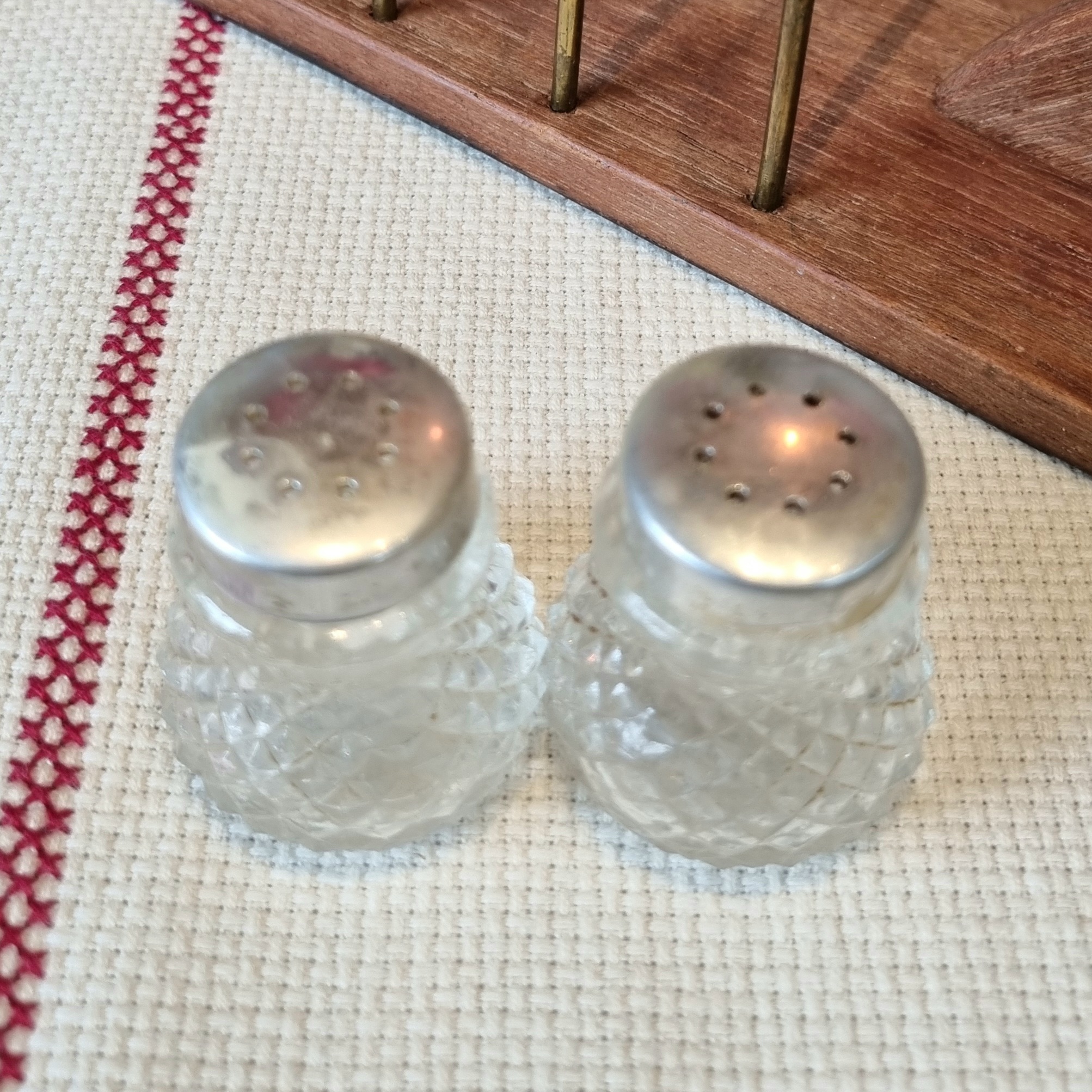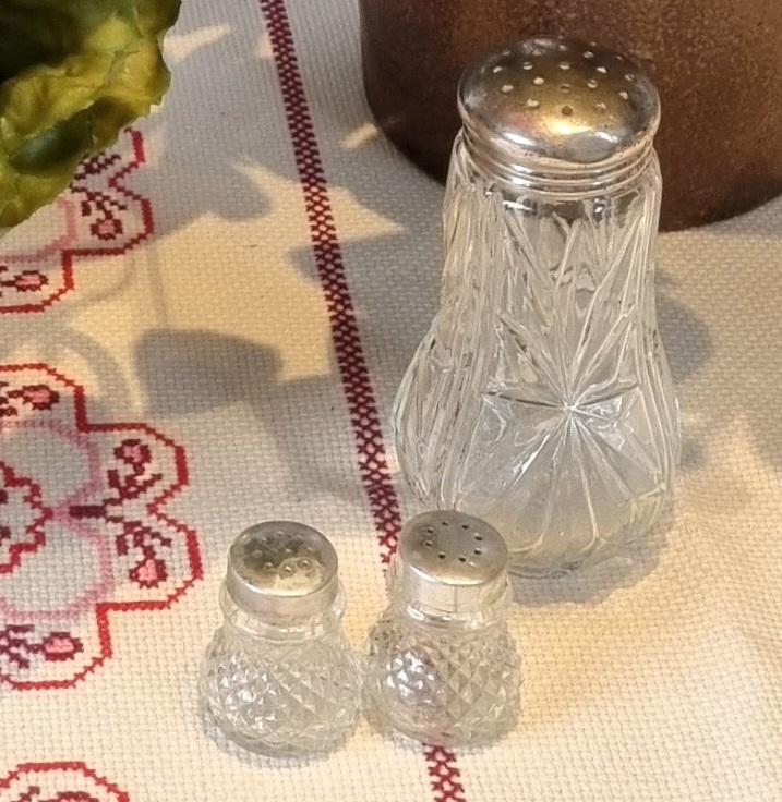 Fint og dekorativt lille strøersæt med 2 stk. bittesmå strøbøsser i rigtig fin stand.