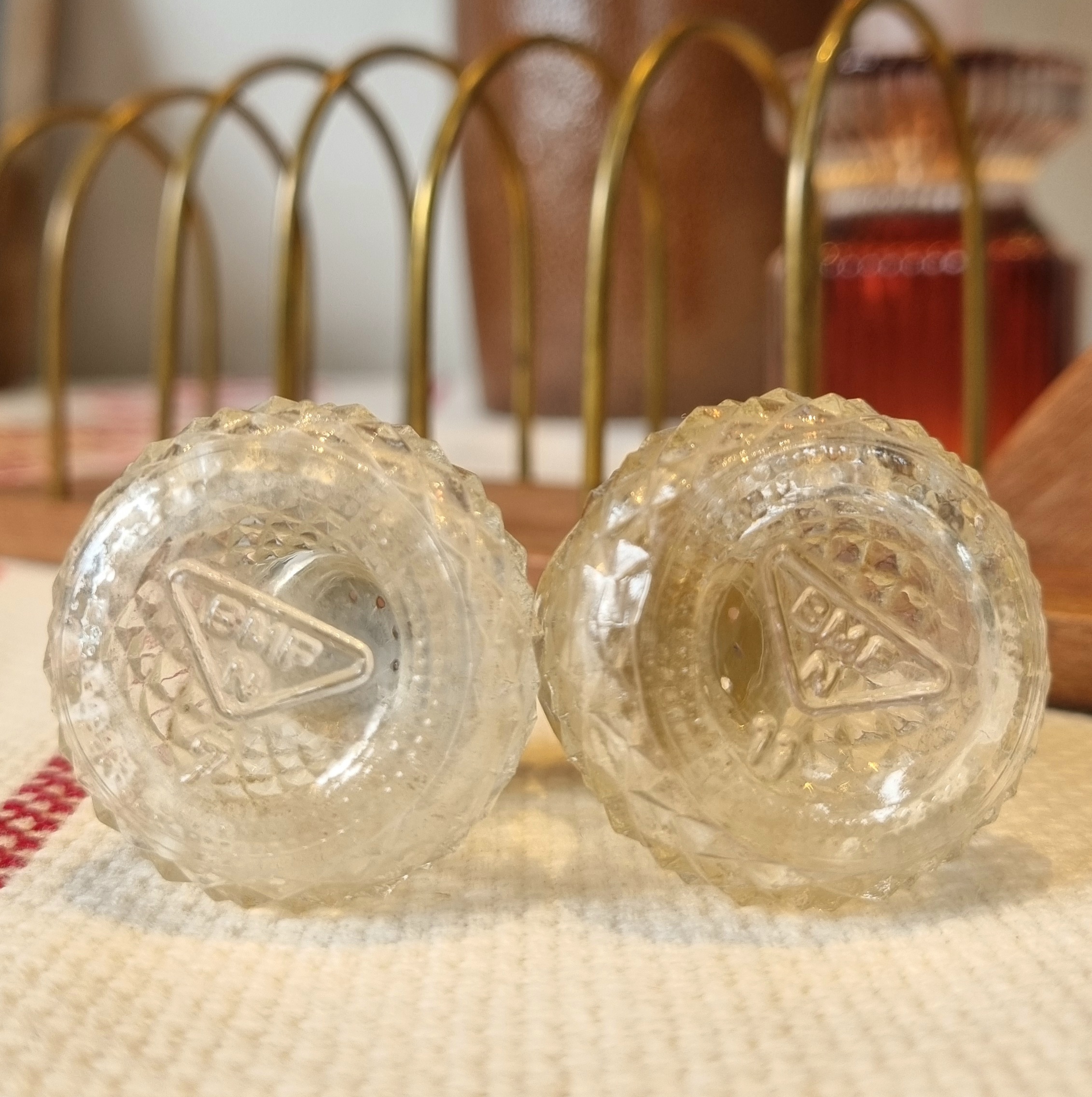 Lille strøer i fint glas – elegant lille sæt med 2 bittesmå strøer – sættet er i rigtig fin stand og begge låg slutter godt til –