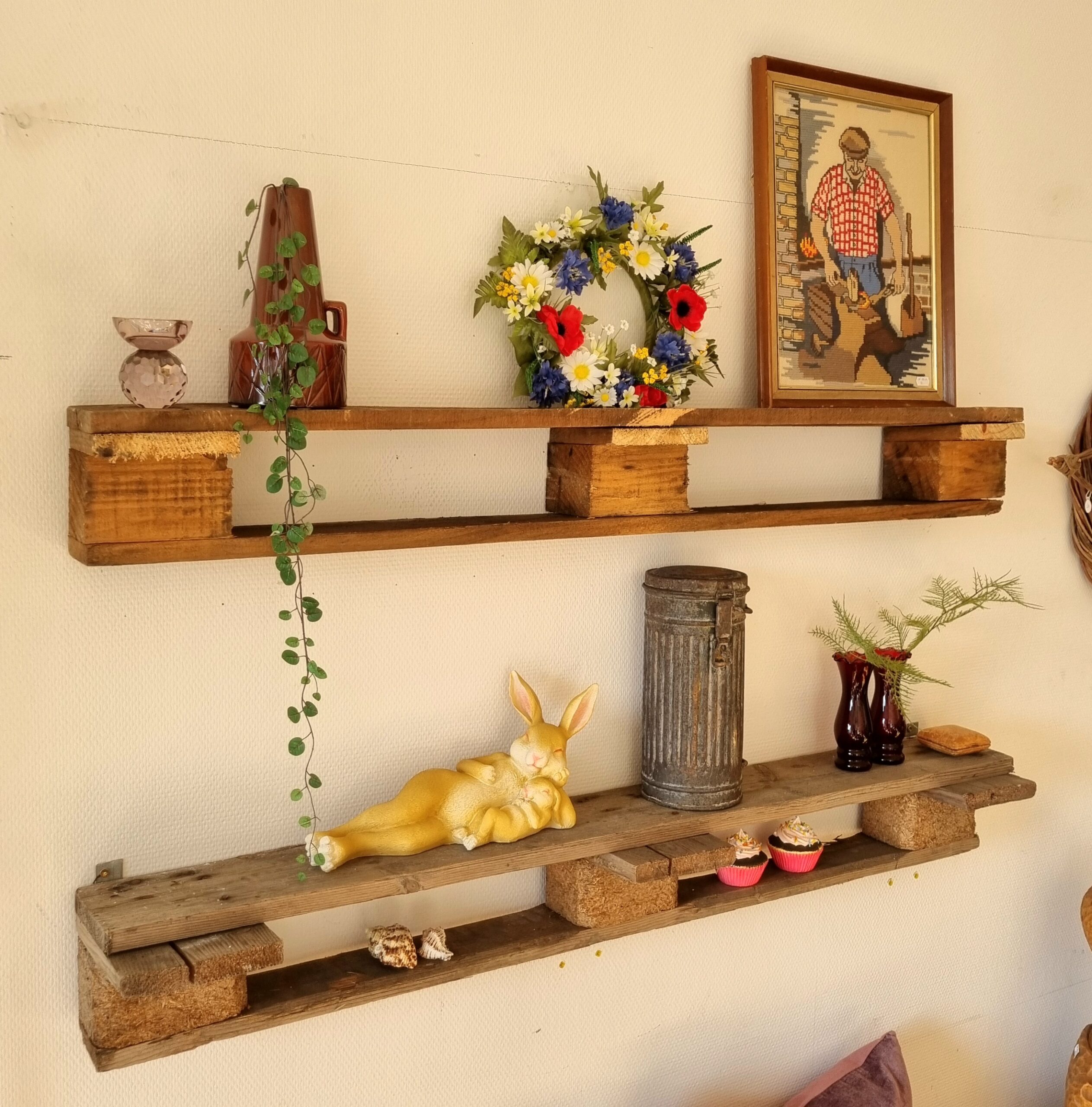 Rustik pallehylde med ophængs beslag bagpå – en flot rå hylde, som er perfekt til f.eks den industrielle boligstil – hylderne er meget robuste og rå – ikke slebet eller behandlet –