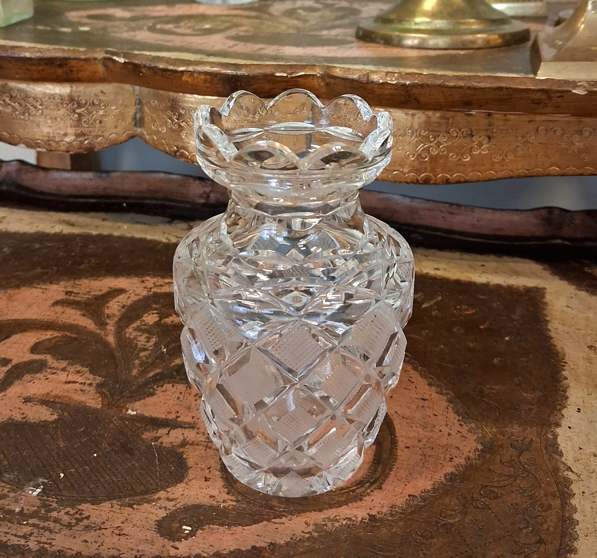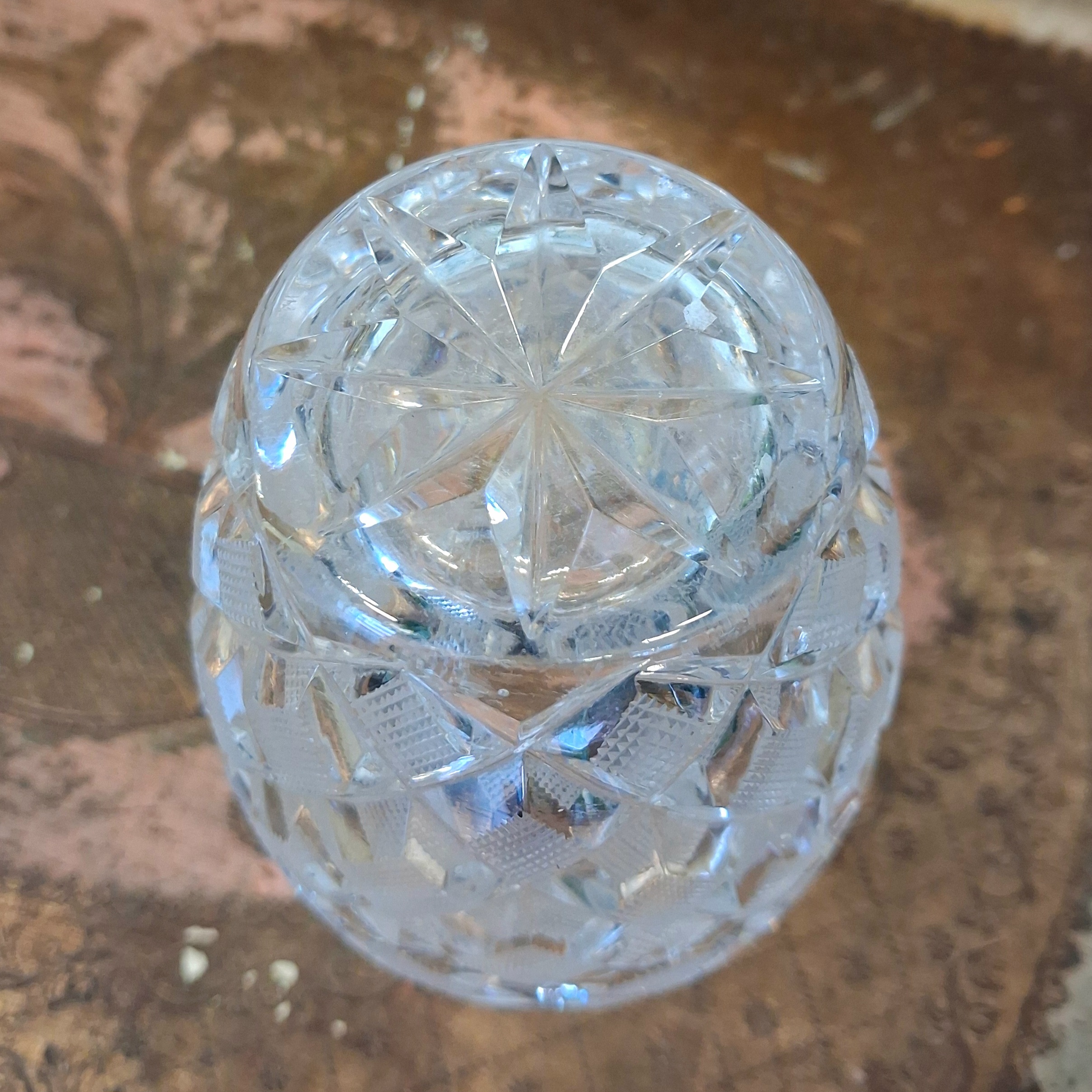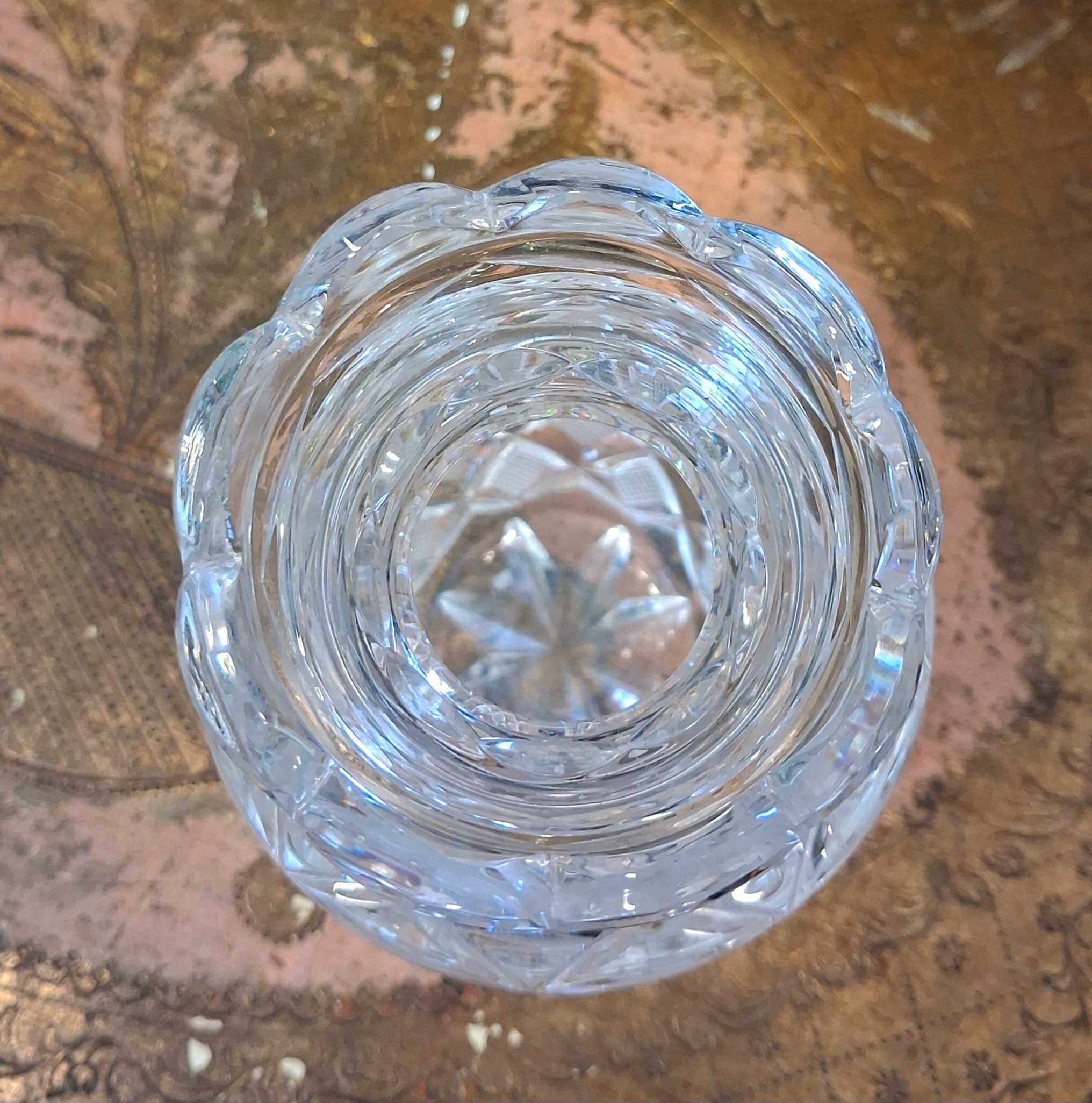 Smuk gammel krystalvase med flot mønster og i sin bedste stand !