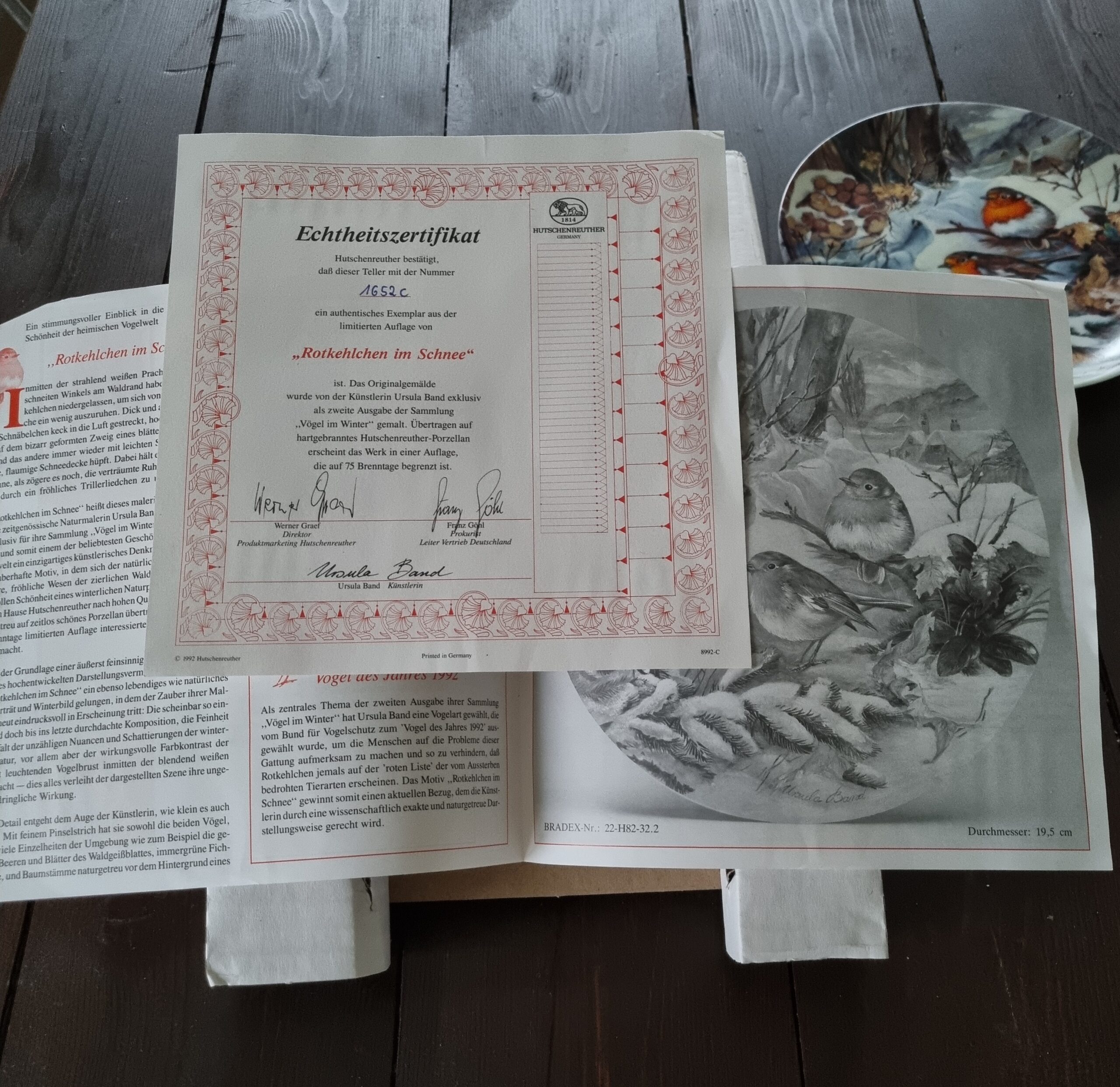 Skønt motiv i serien “Vögel im Winter” – denne hedder “Rotkelchen im Schnee” nummereret 1652 c.