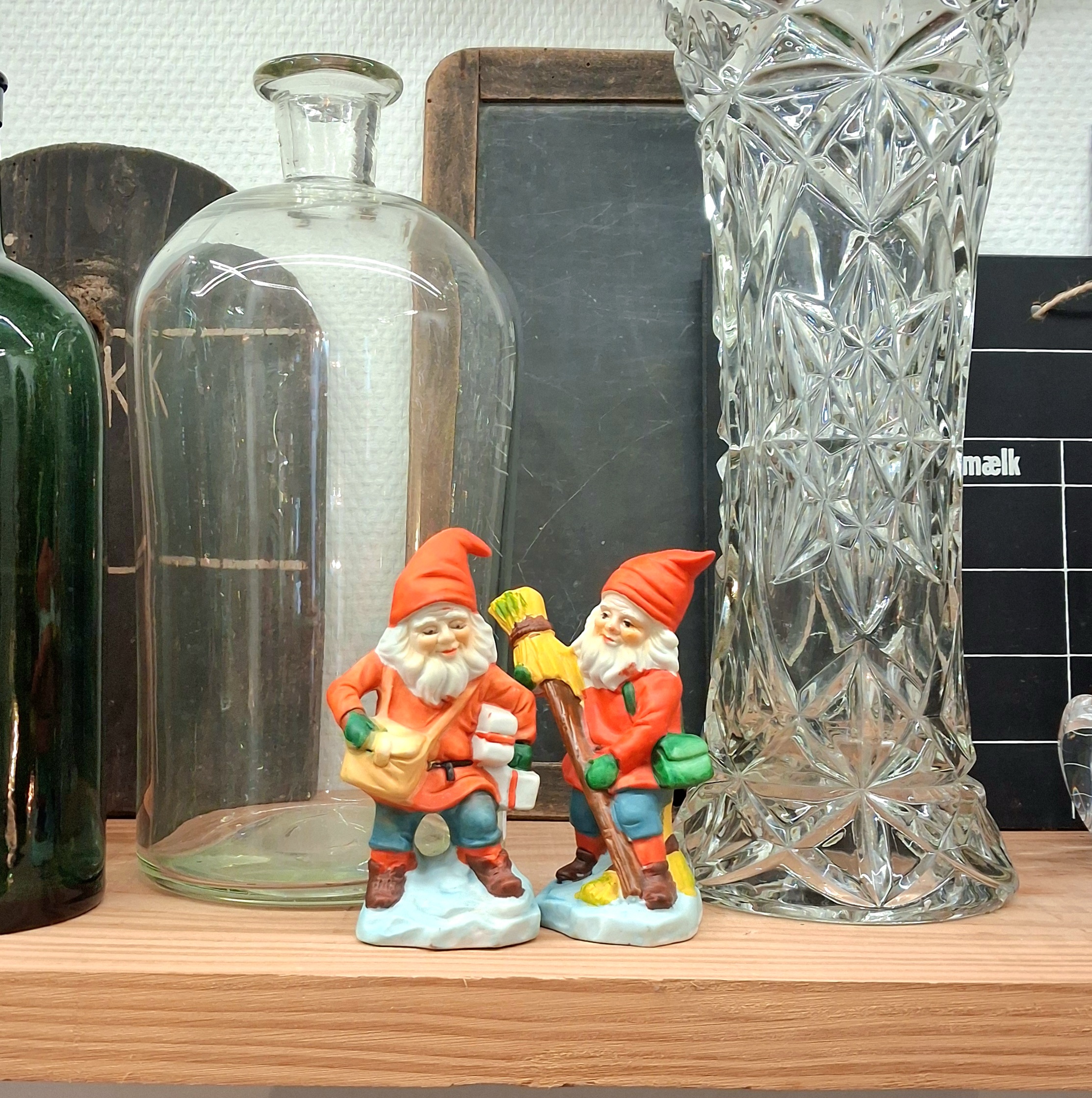 Søde retro nisser i porcelæn – sæt i fin stand – nissene er søde og charmerende, i rigtig flot stand trods mange år på bagen og meget dekorative, lavet i porcelæns materiale – et flot sæt med 2 stk. gamle nisser, som sælges samlet til prisen –
