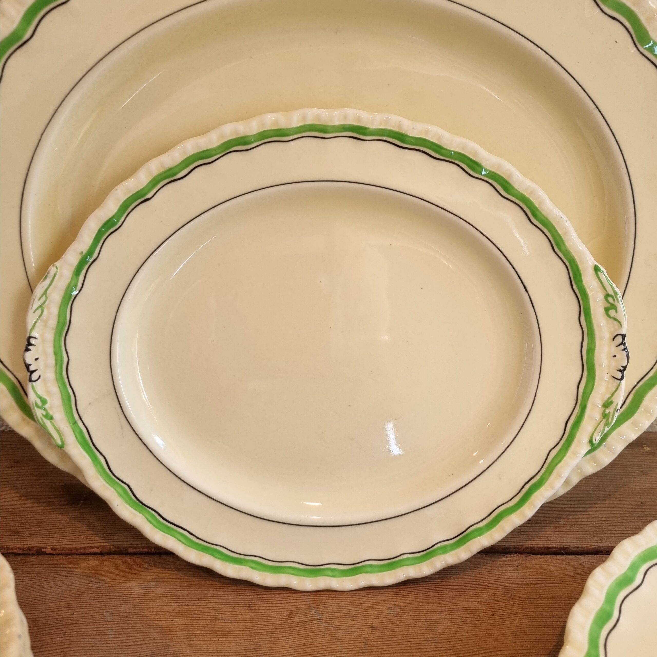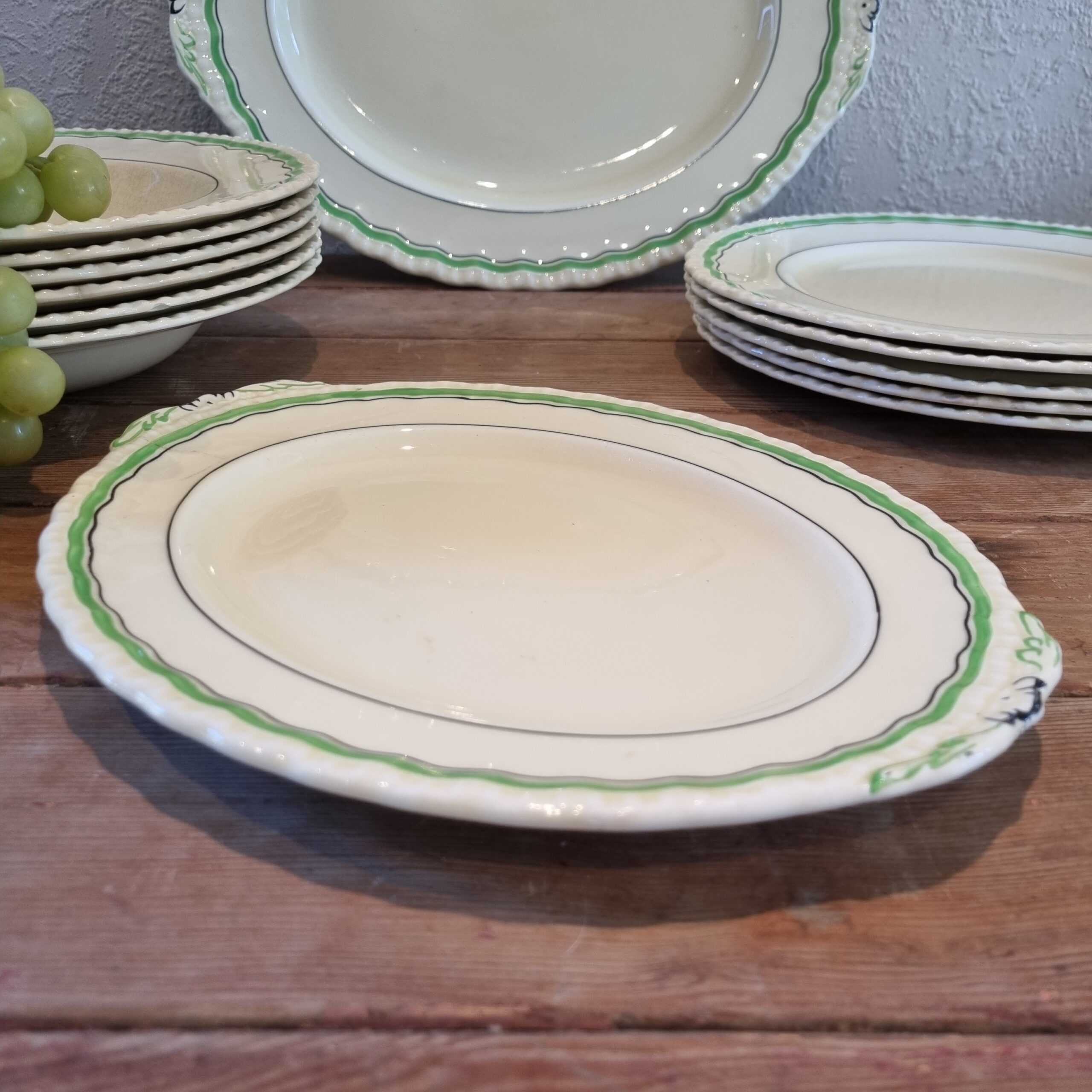 Sødt lille Creampetal ovalt kagefad – Grindley England – sødt og fint med en lille grøn stribe og guldkant – i flot stand uden skår eller revner –