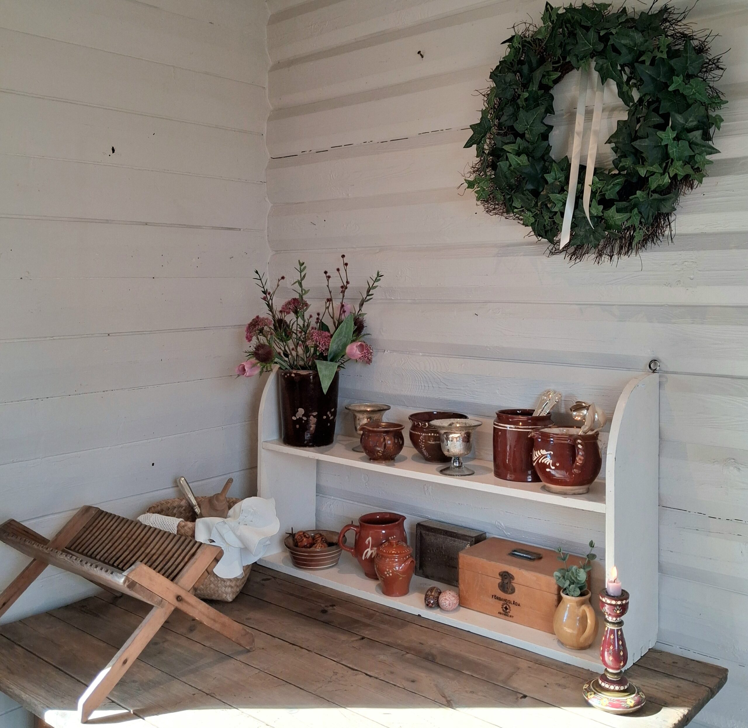 Flot flødefarvet hylde – robust, praktisk og dekorativ med gode ophængs beslag !