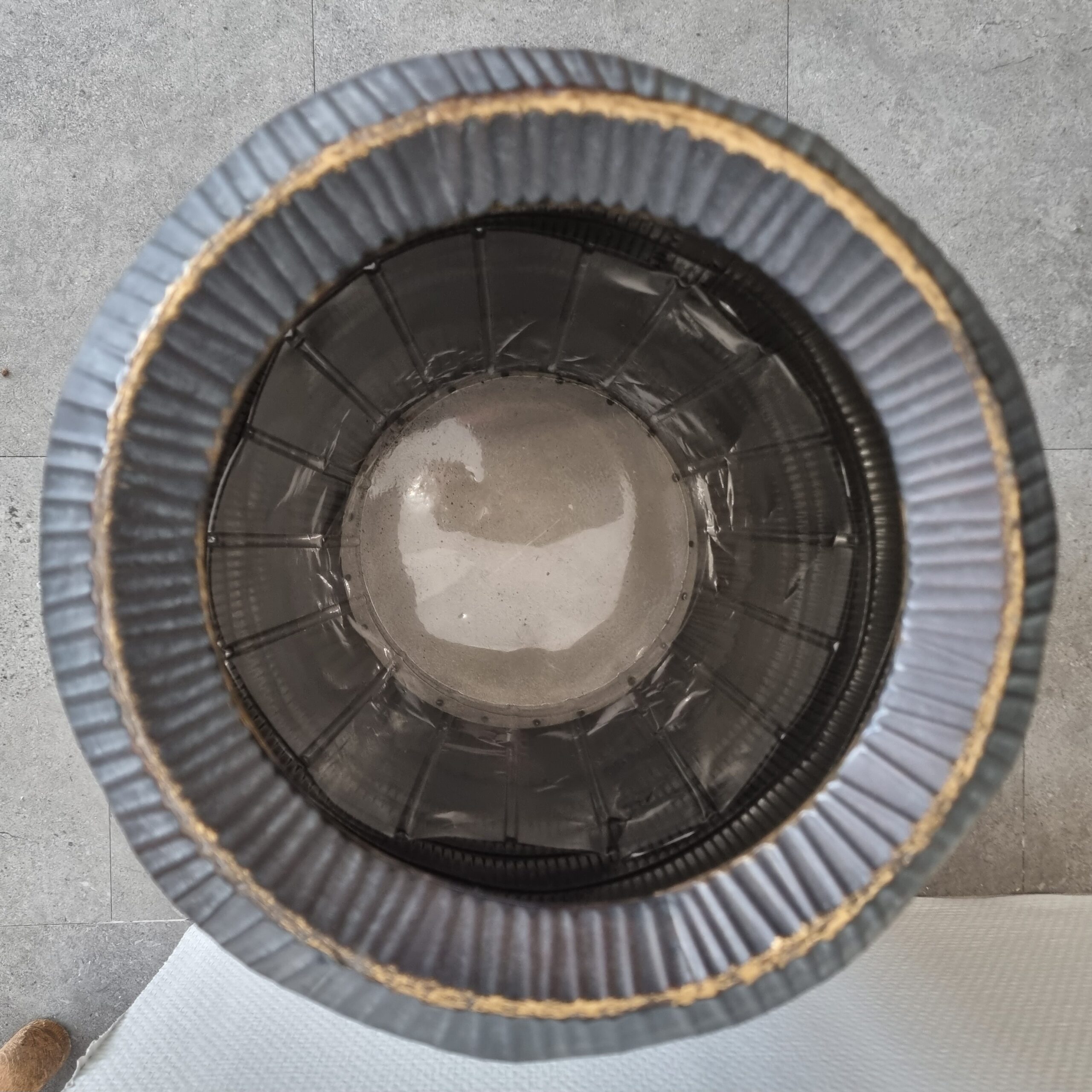 Skøn rustik og samtidig elegant stor krukke i let metal med plast indsats fra Holmen Interiør – kun brugt til udstilling !