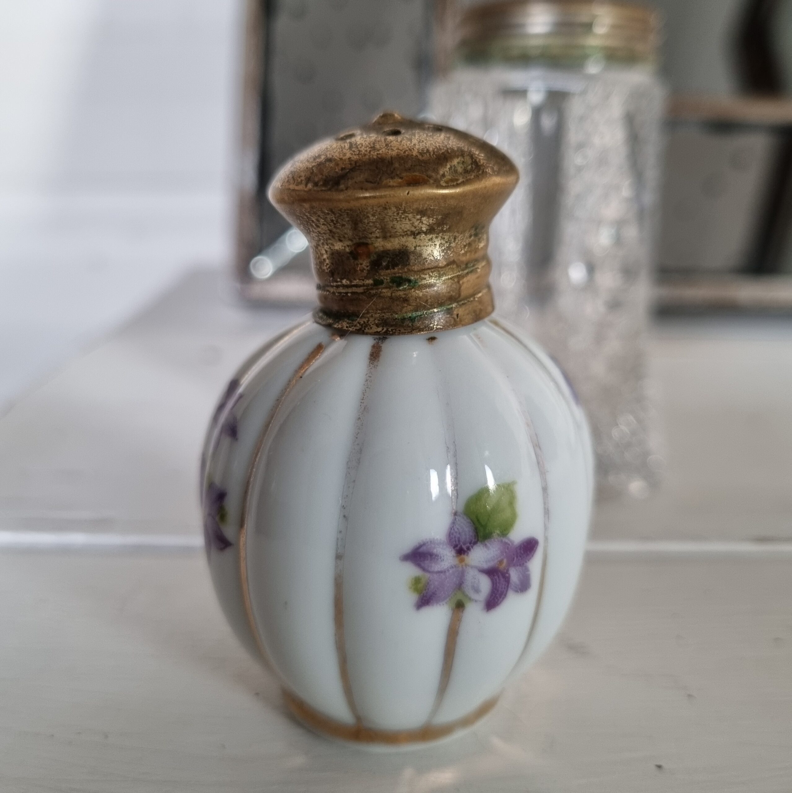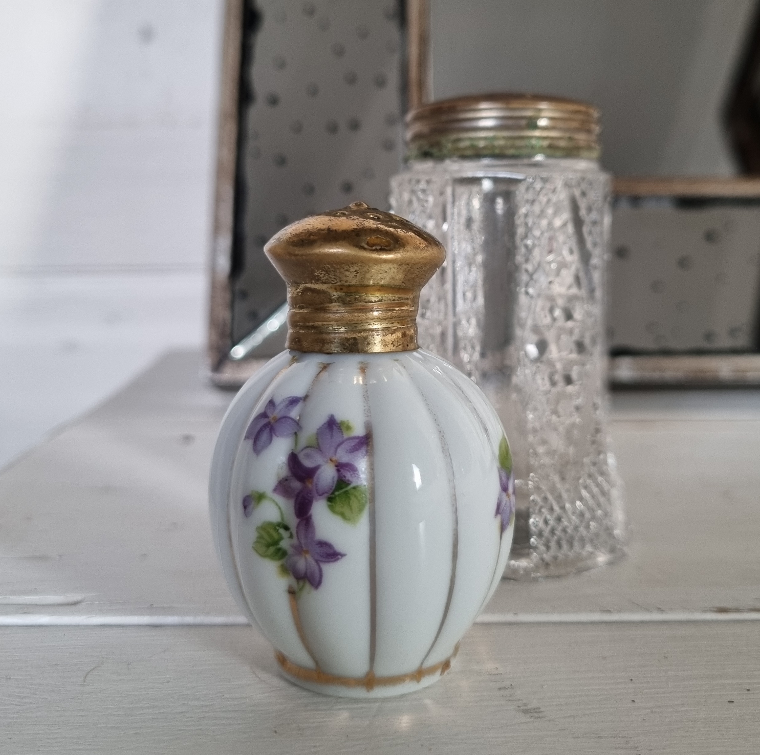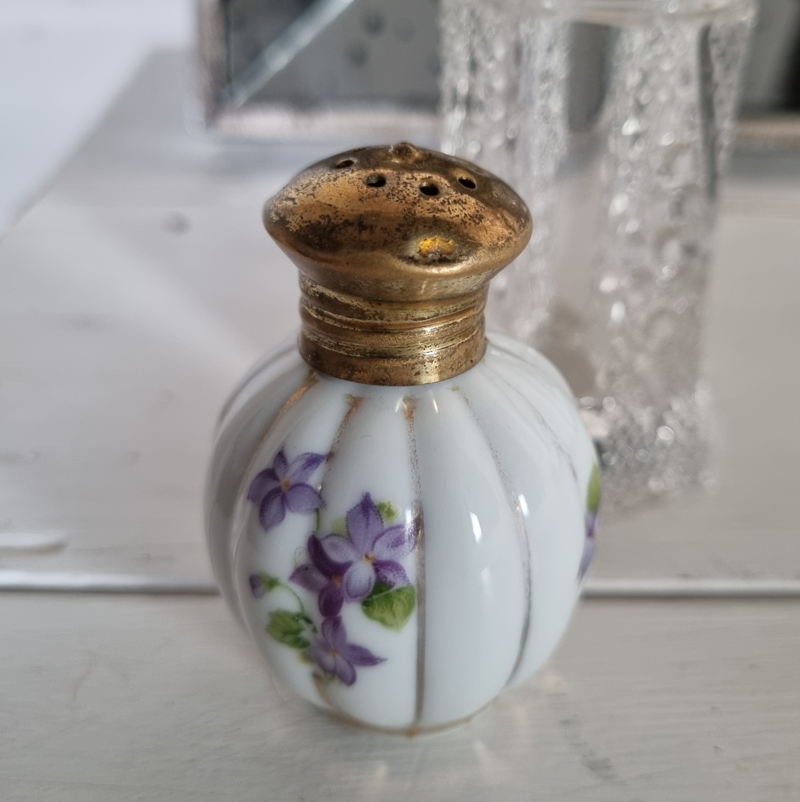 Skøn lille strøbøsse i smukt porcelæn – meget dekorativ !